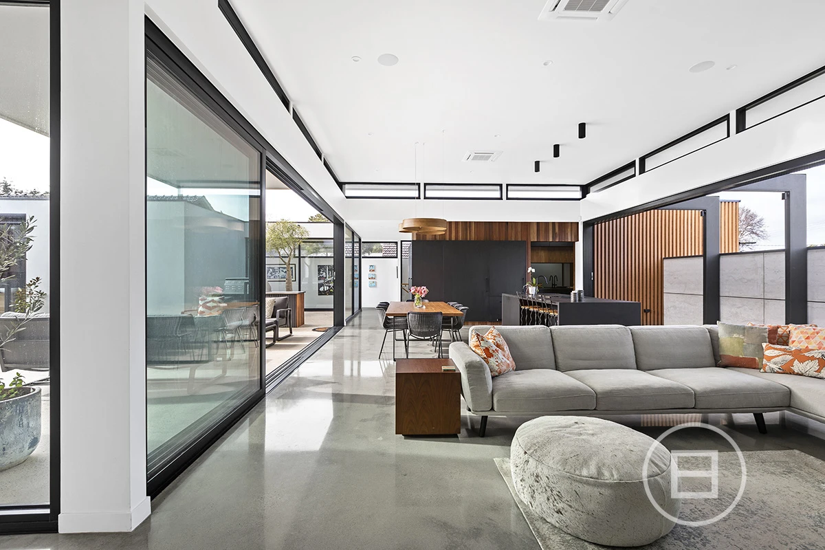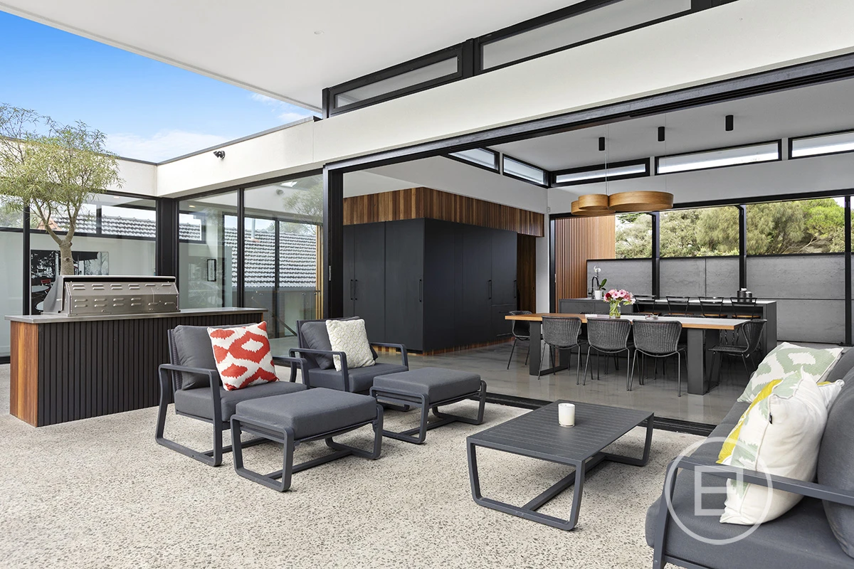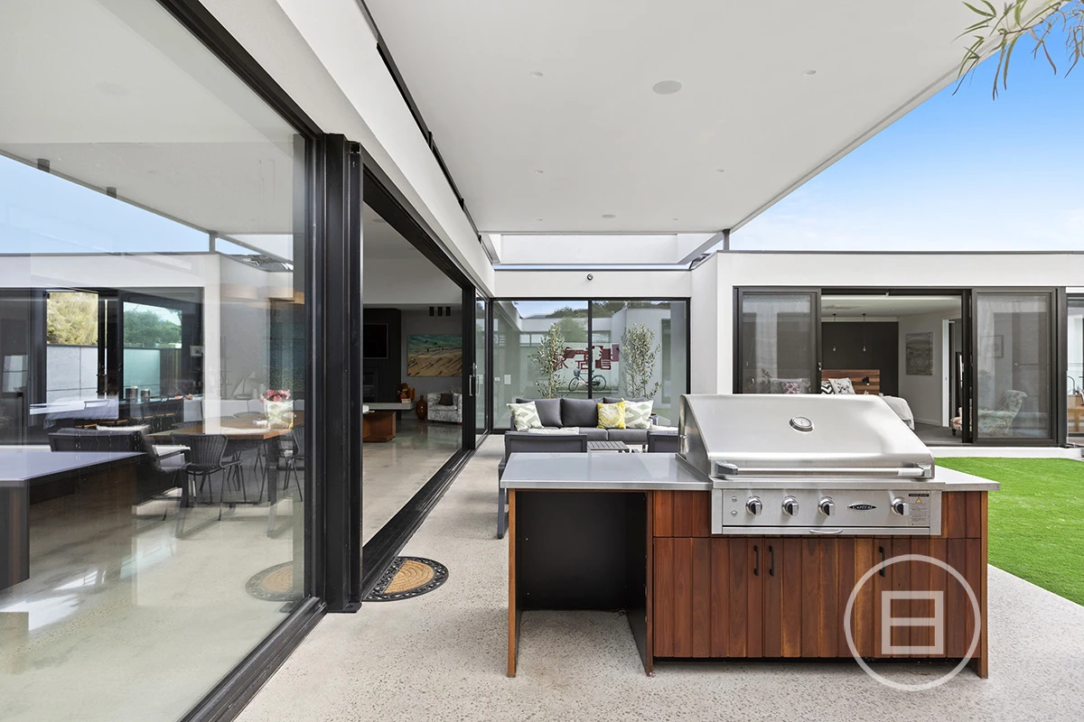 Outdoors has been thoughtfully designed with 3 separate areas all coming together fluidly. The pool/spa has a private sunbathing deck to lounge around on, while the outdoor BBQ and dining space transitions into the indoor dining effortlessly. The guest wing comprises of 3 bedrooms with a central bathroom and powder room, as well as access to the rear herb garden.