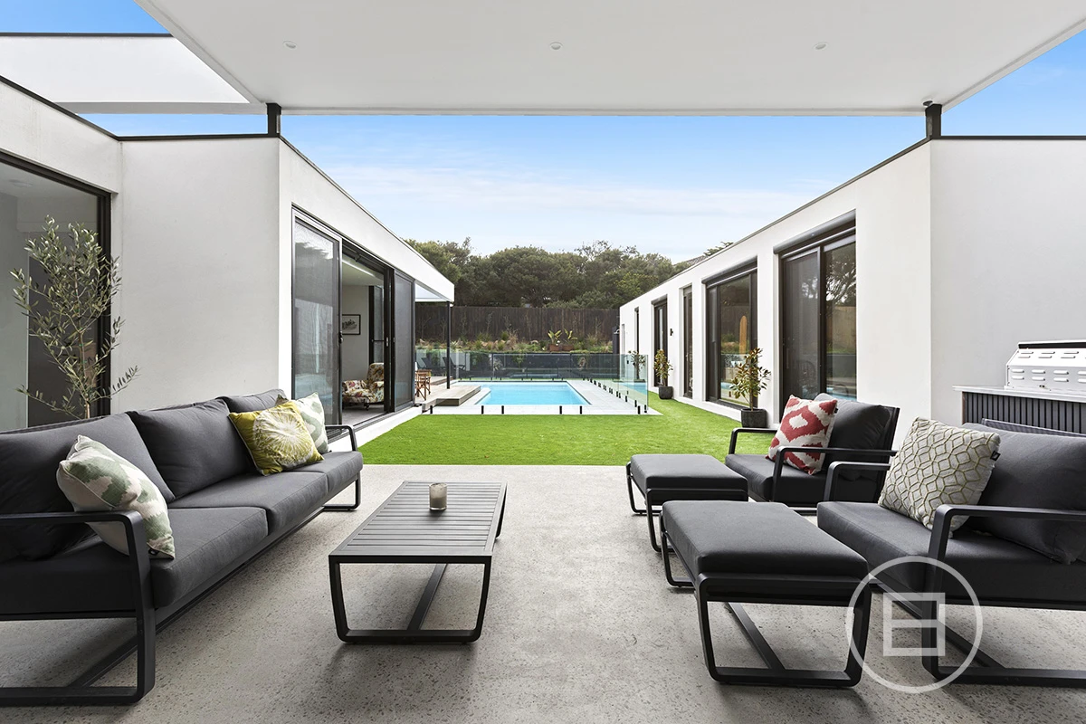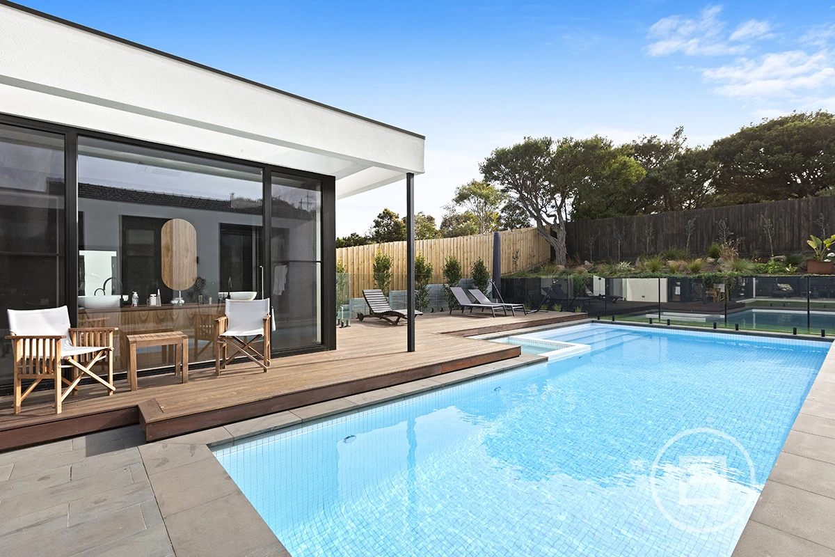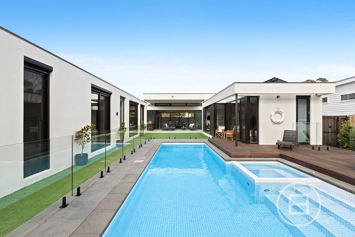 Contemporary architect designed on 1,096 sqm approx, this brand new build under a 10min walk from the Sorrento Main Street and amenities, is an entertainer and car lovers dream. Driving into your home, you enter into a huge 6 car polished concrete floor garage, complete with hoist and separate storage areas. An internal lift gives you access to both levels, as well as a feature timber staircase. The main level of the contemporary home comprises 4 bedrooms, 2 bathrooms, cinema, study, open plan kitchen dining with 2 separate outdoor areas, outdoor barbeque zone, and an inground heated pool and spa; the ultimate in seasonal entertaining.