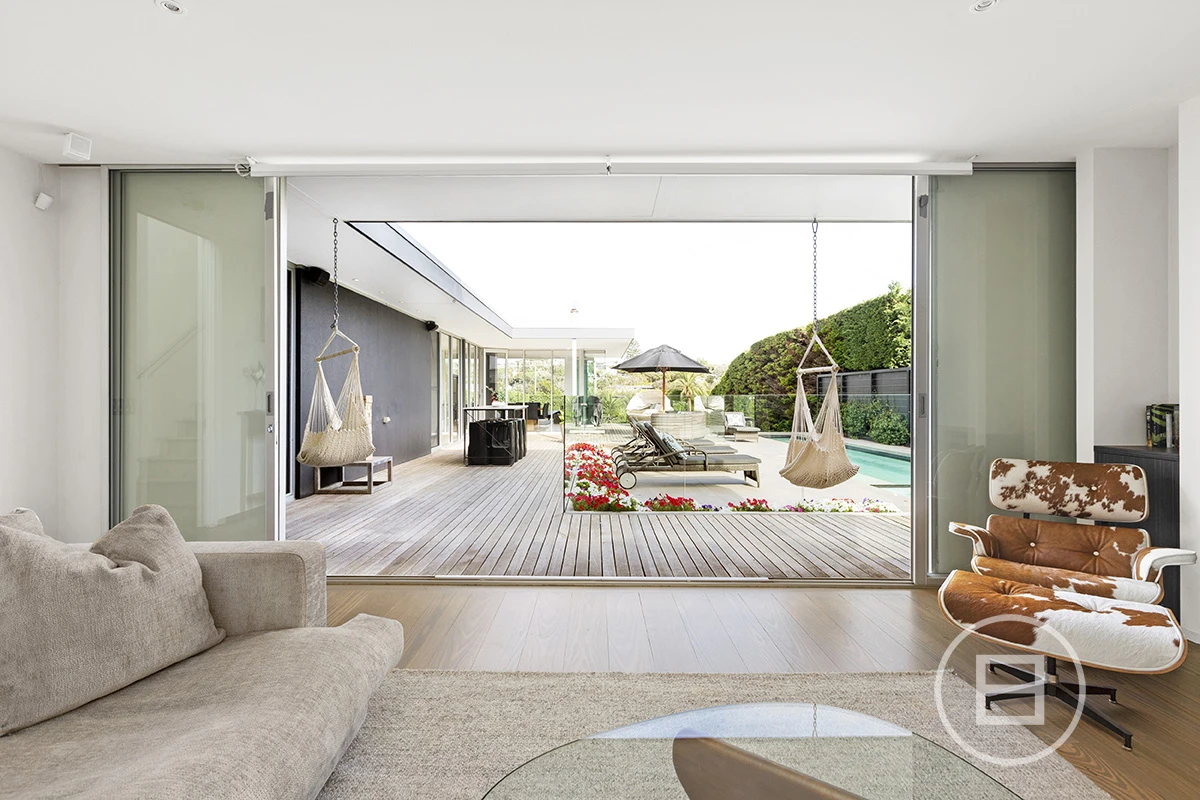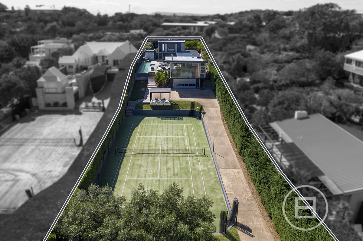 The U-shape design floorplan works perfectly and the second living zone still feels connected to the kitchen area as the line of sight is never broken due to glass walls which slide open and connect all areas. The living level also includes 3 bedrooms all large in size with 1 including en-suite, large kids bunk room, 3rd guest, central bathroom and pool house. The master wing sits high overlooking the house, pool and tennis court with plenty of storage and en-suite. Downstairs is a full height double garage and storage room.