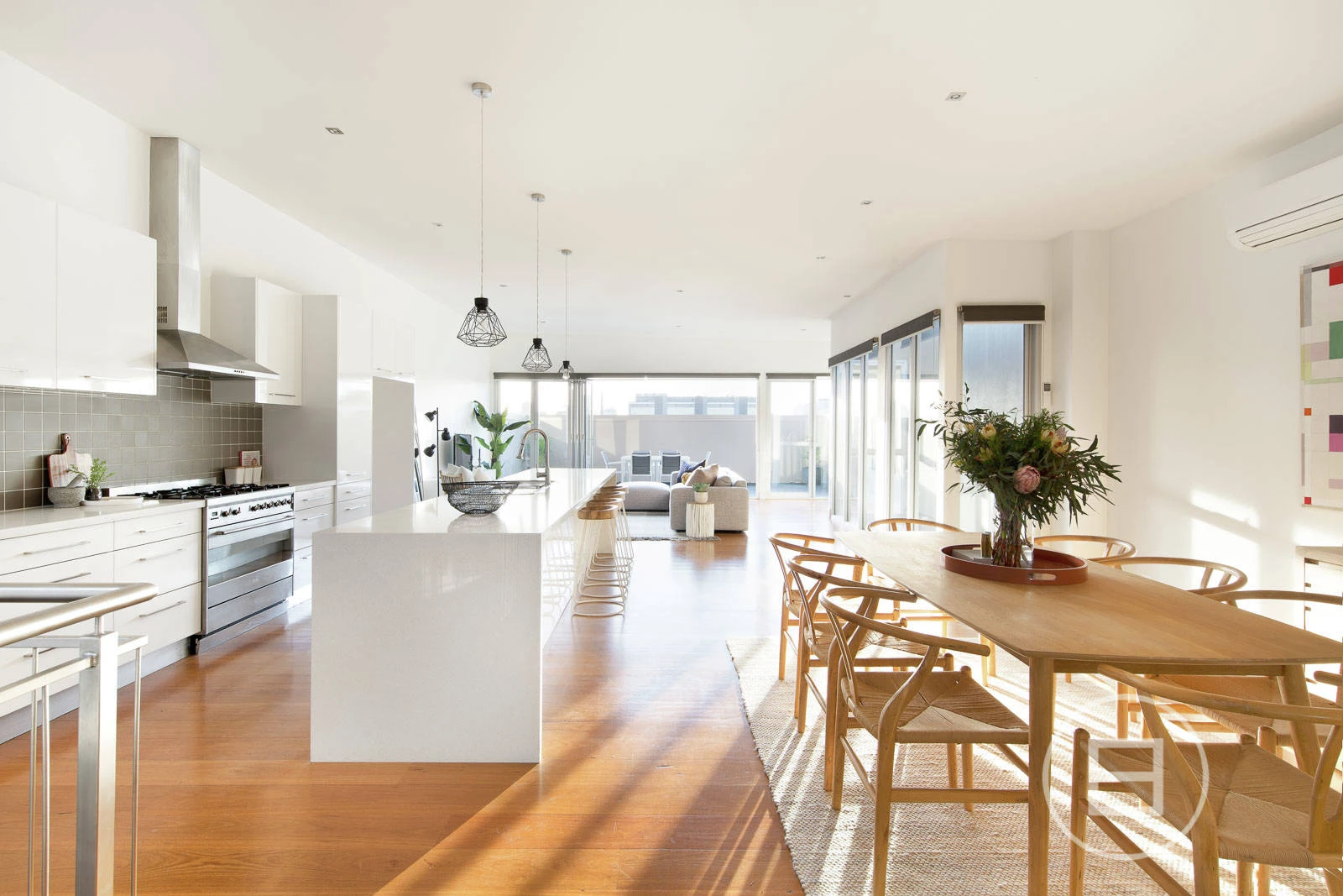 Warehouse of epic proportions. Quiet and tucked away but in the thick of urban Melbourne. 3 bedrooms on the middle level with 2 bathrooms and master with ensuite. High ceilings throughout all levels with an internal lift taking you from a private 4 car garage to the top. An open plan kitchen, living and dining stepping out onto a north facing sun deck is perfect for entertaining.