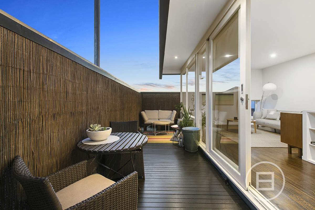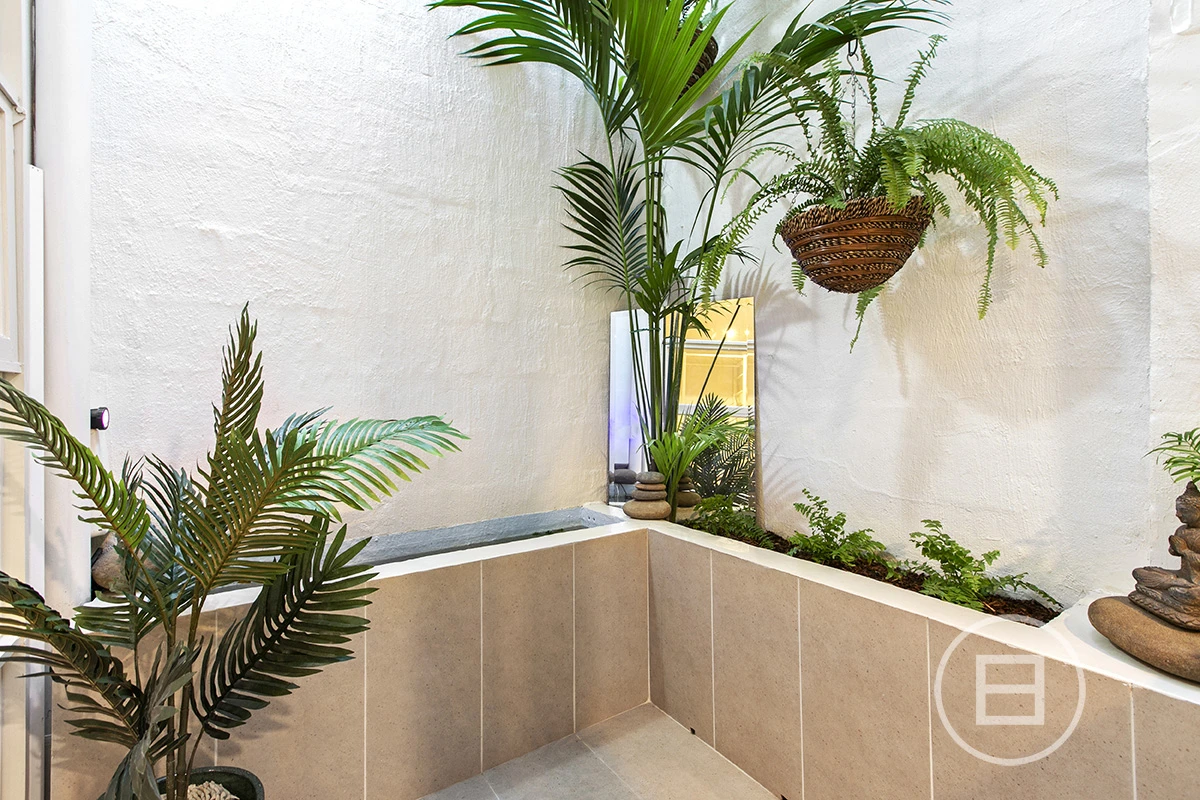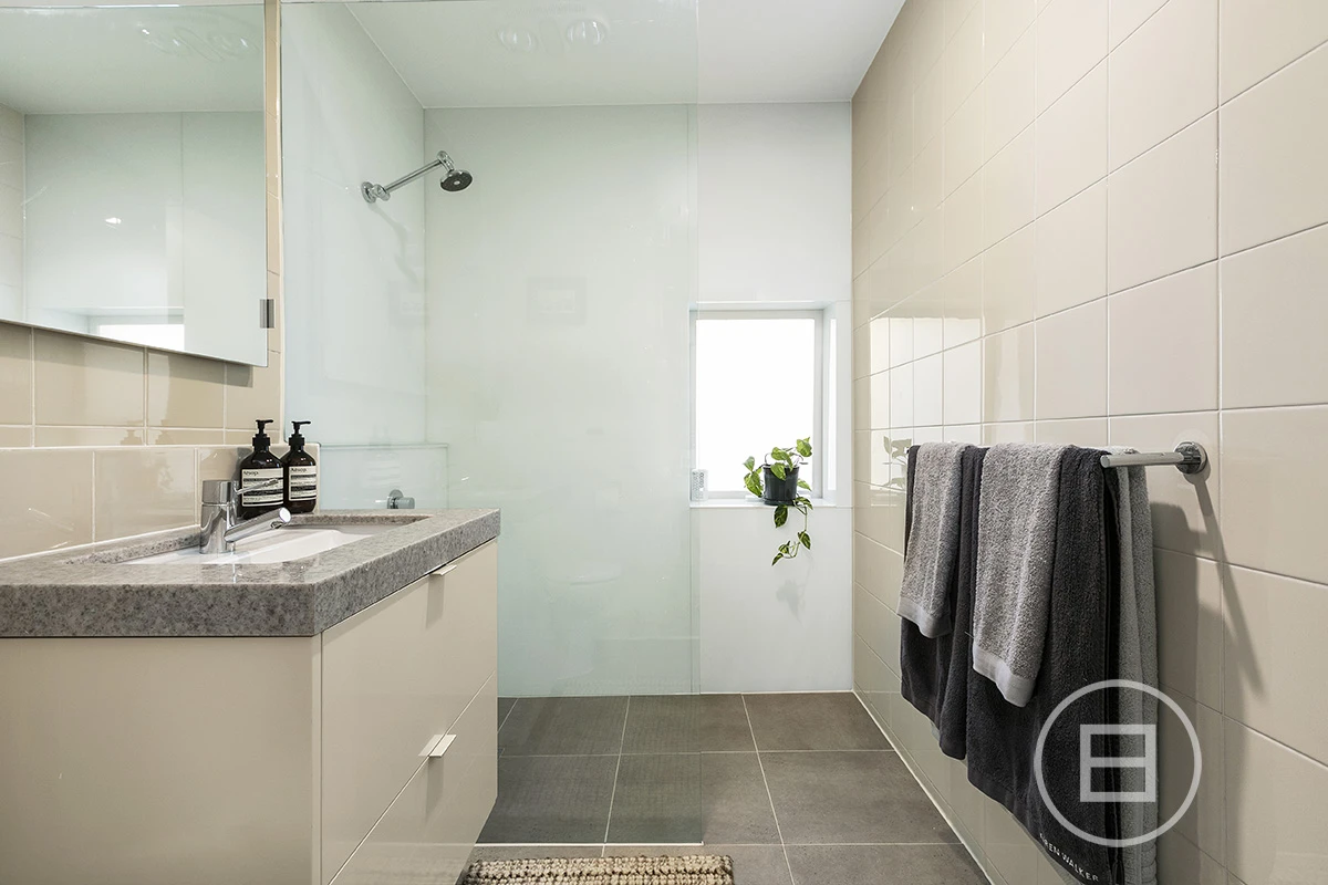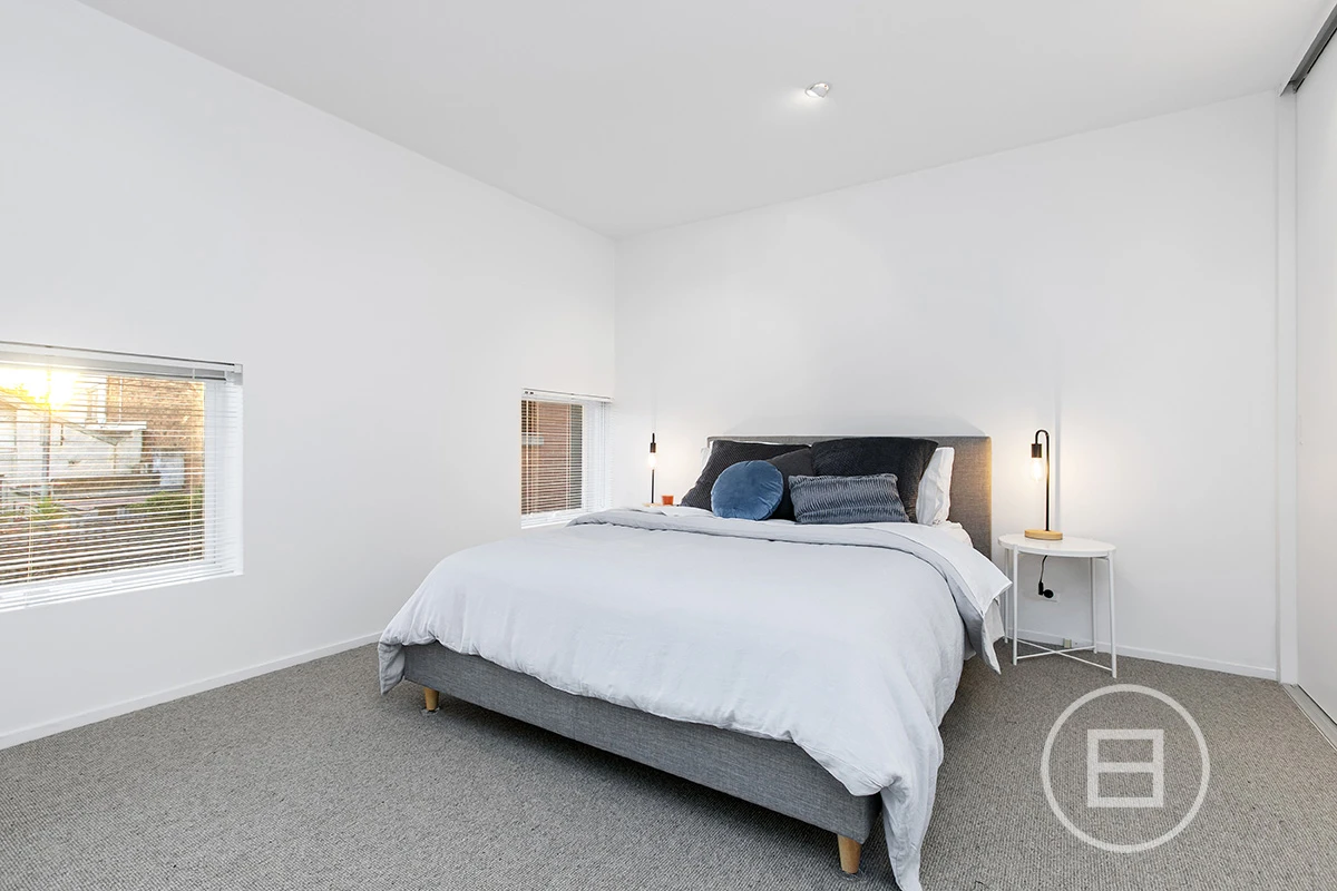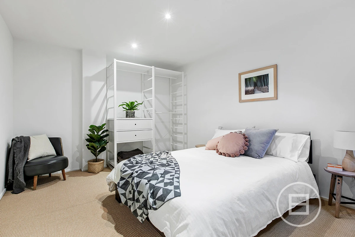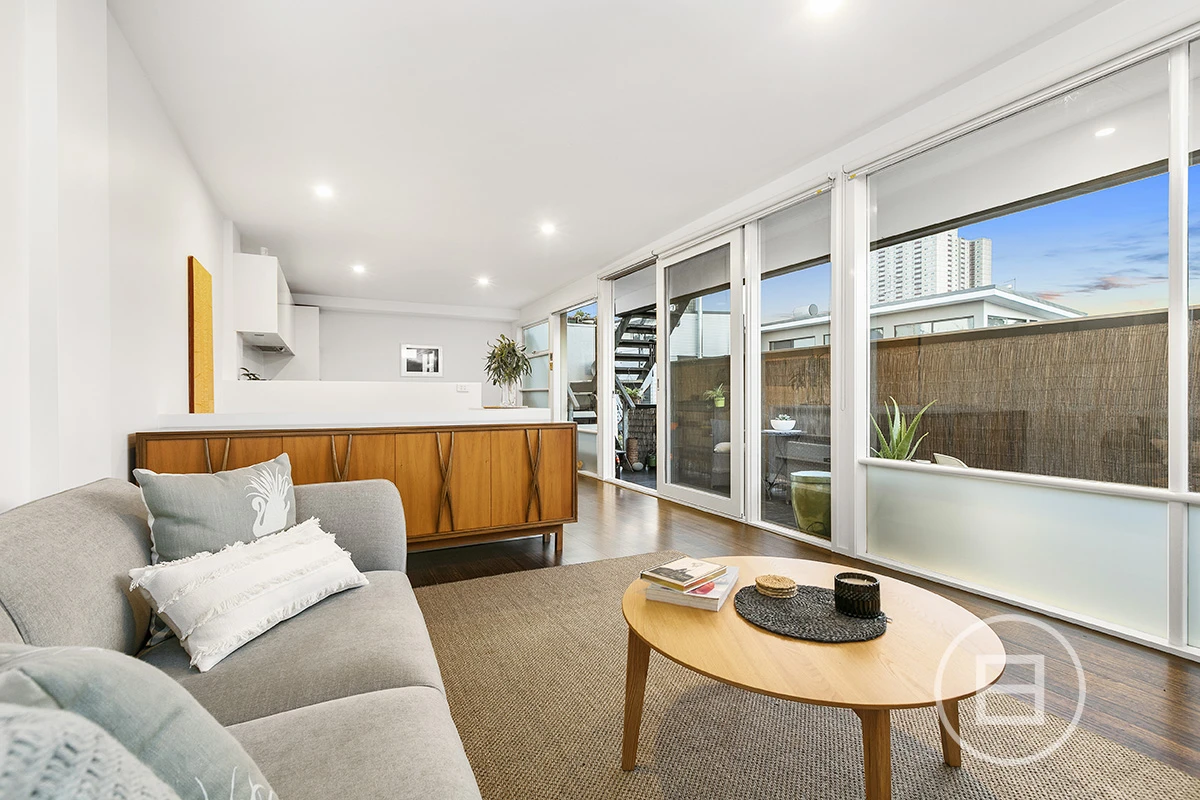 This is a three-bedroom, two-bathroom multi-level home on a quiet bluestone lane. Peaceful on the ground, potential for revelry at the top. Here you’ll find layers of cleverly designed living spaces stacked neatly on top of each other. On the ground, there’s the first bedroom, which is light-filled and tranquil thanks to the atrium. The first floor is a split-level zone which includes a main bedroom with ensuite, plus an additional bedroom and separate bathroom. Ascend again to the open plan living area with solid timber floorboards and kitchen with stone benchtops. Floor-to-ceiling double glazed sliding doors open to an enclosed balcony. You’re walking distance from South Melbourne Market as well as cafes and restaurants on Coventry Street. Cycle to the CBD or jump on the light rail. You’ll rarely need the car, but if you do, you have your own lock-up garage.