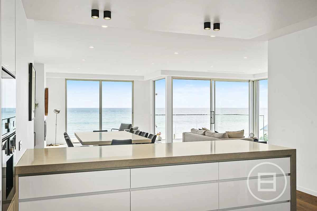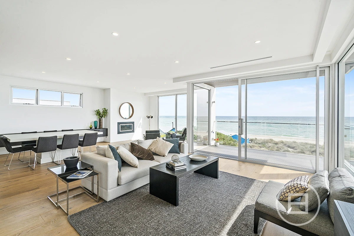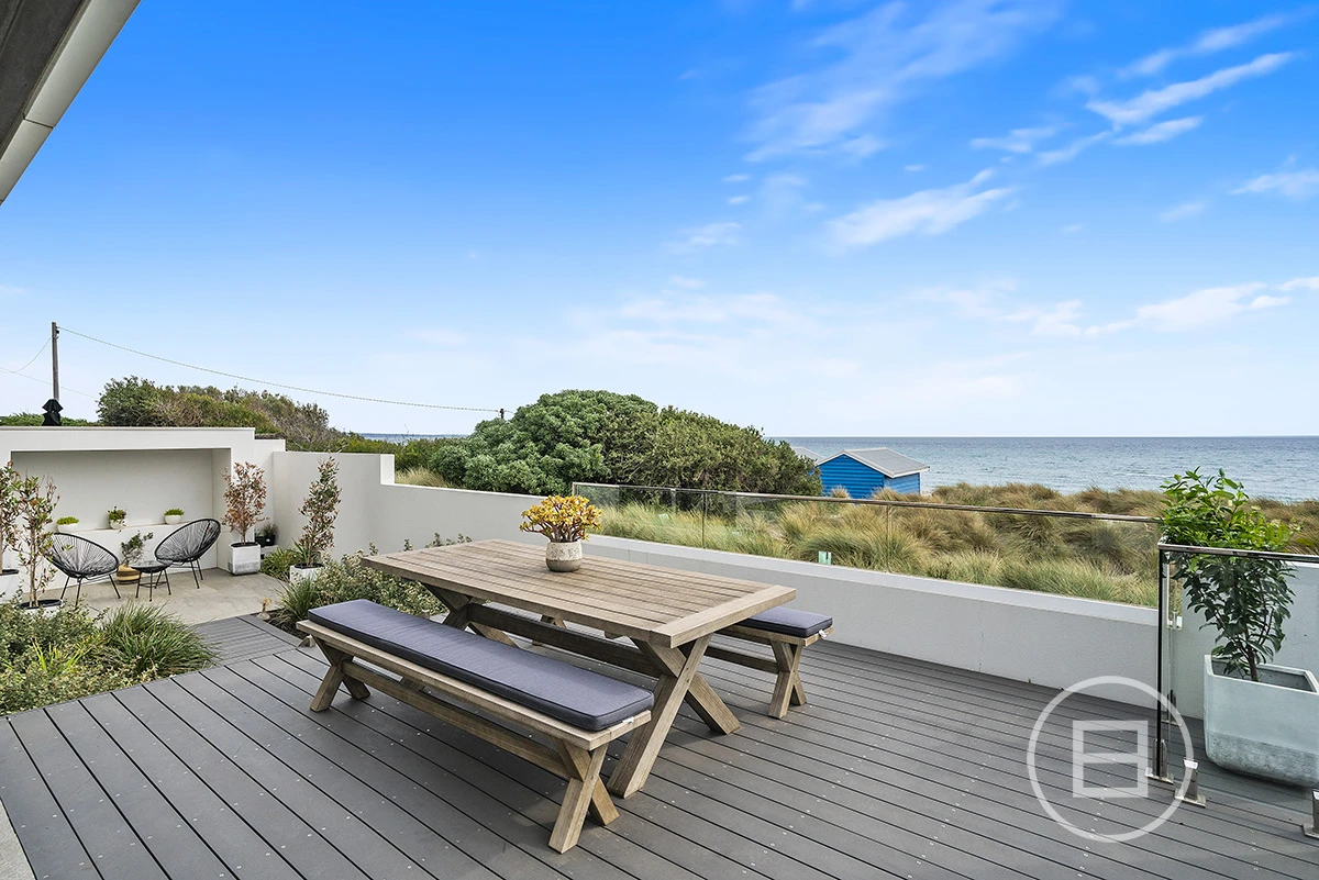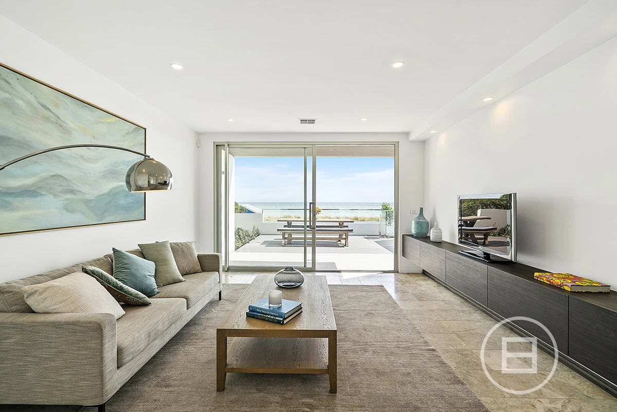 Architecturally designed to maximise the angle of the awe-inspiring absolute beachfront bay views from both levels is this phenomenal 3 bedroom, 4 bathroom, double garage home. High spec finishes throughout including private lift to the 3 levels, Italian marble floors and tiling in all bathrooms. Incredible accommodation, dual living options, the massive open plan living, dining and beautiful lounge area opening onto the beachfront decked terrace and a private BBQ area, with a full spec Gagganau kitchen upstairs opening to a balcony. Downstairs featuring a master suite with bath overlooking the water, is one of the finest views you'll ever be able to take in.