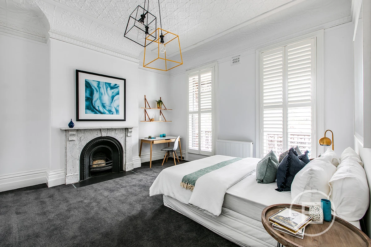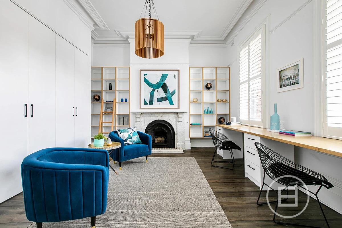 Your double-fronted Victorian dream is about to come true. An extraordinary architectural feat, this grand historic dame, situated on approximately 308 sqm of land, has been completely redesigned and now stands firmly in the present. Beyond the commanding façade, find the office with built-in desk and bookshelves. The living and dining room has a striking black fireplace and black and copper feature lighting. A family room with bluestone feature wall and abundant natural light looks out over the garden with plunge pool, built-in barbeque and bench seating. The kitchen with stone benchtops and Miele appliances completes the space. Take the timber staircase to the first floor, which has three bedrooms with pressed metal ceilings and art-like lighting design. There are two bathrooms and a sauna in this zone too. To the rear of the property, there is a garage with laneway access and a self-contained studio with bedroom, kitchenette and bathroom situated above. With the best in designer living and an impossible-to-beat position, moments from Albert Park, the CBD, schools and transport, there’s only one thing to do: see it for yourself.