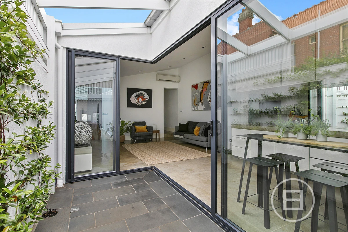 This stunning blue chip South Melbourne residence, has been architecturally restored whilst still holding the charm of a traditional Victorian home. Classic archways, concrete bench tops in the kitchen & bathroom. Polished concrete flooring in the open plan living, kitchen & dining, with large bi-folding doors out to the courtyard are just some of the features in this special 2 bedroom residence.