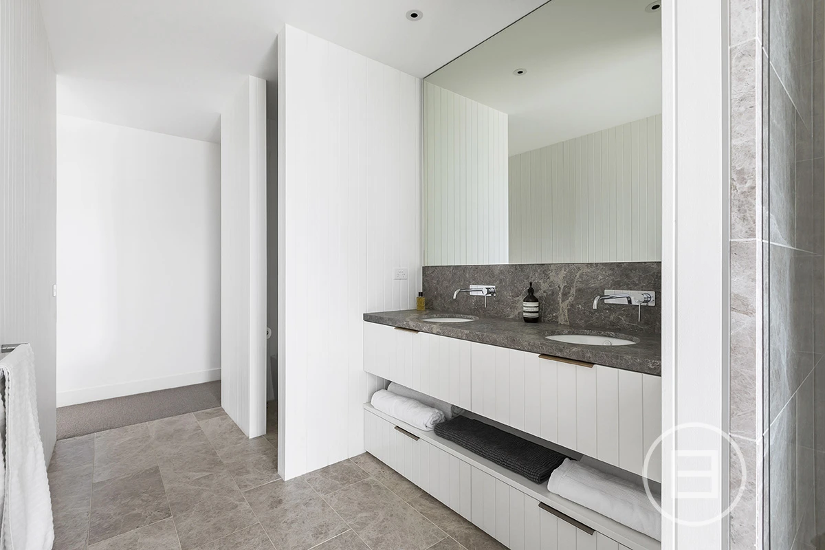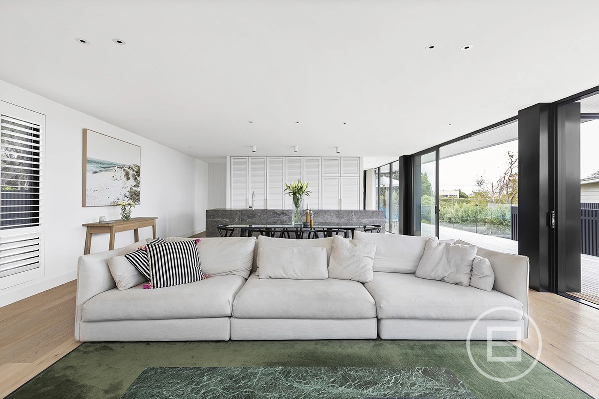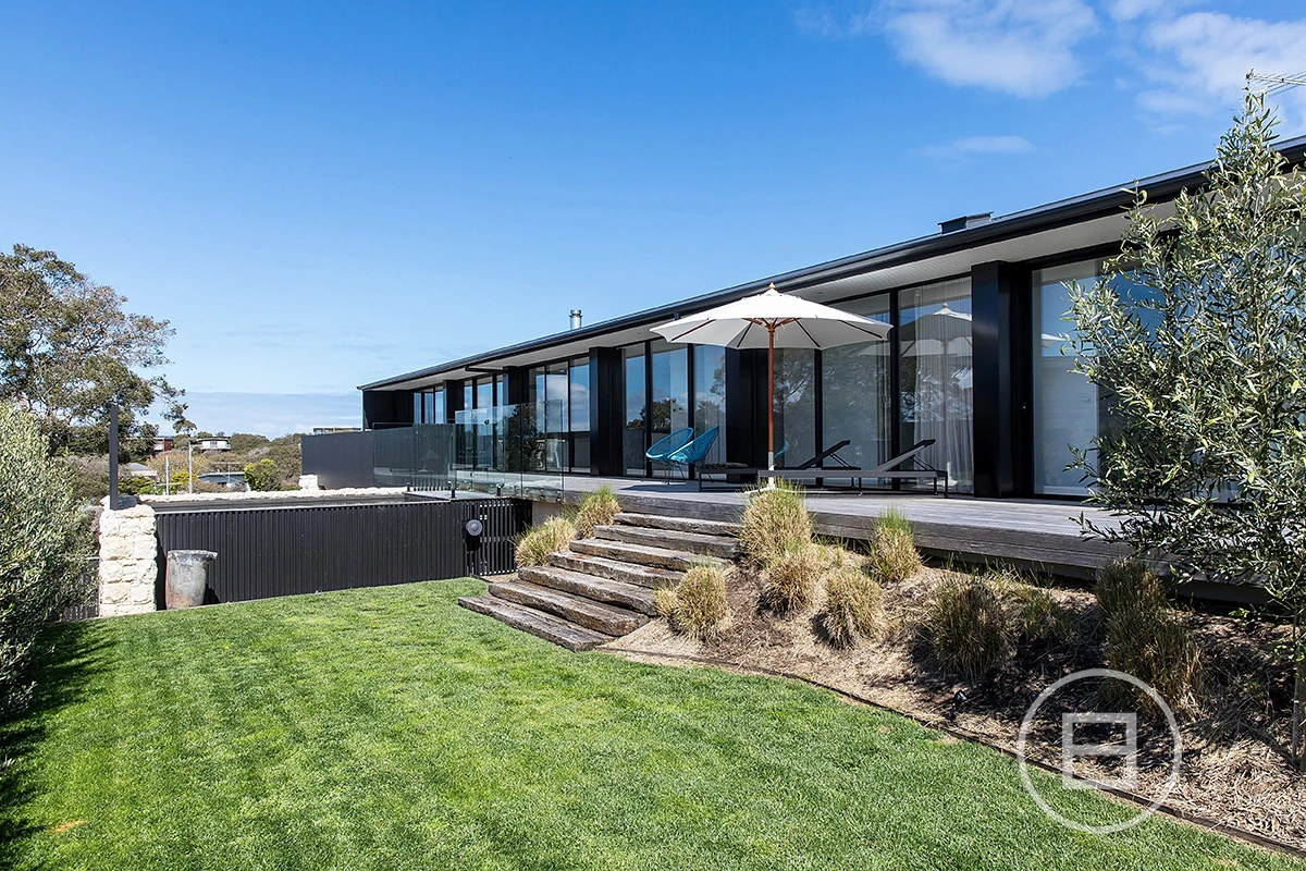 Perched high and gaining expansive views out across the bay this stunning home known as Bernie’s beach house as featured in Belle magazine is all about natural tones and quality finishes. Downstairs upon entry past a large double garage you’ll find a beautifully manicured entry with stone feature wall, guest bedroom and separate study. Upstairs is where the home comes to life with an open plan kitchen, living and dining with feature central travertine wall and natural wood log fire place. The combination of grey tundra marble, Italian silver vein cut travertine, white cedar louvres and woodcut pale oak floors combine to give you a luxurious palate throughout. With 4 bedrooms, 3 bathrooms plus powder, 2 living zones and a northern orientation it’s hard to find anything this family entertainer is missing. Concrete slab hydronic heating, ducted split cooling and heating, double glazed windows throughout and views out across the bay are all features you will enjoy living in this home.