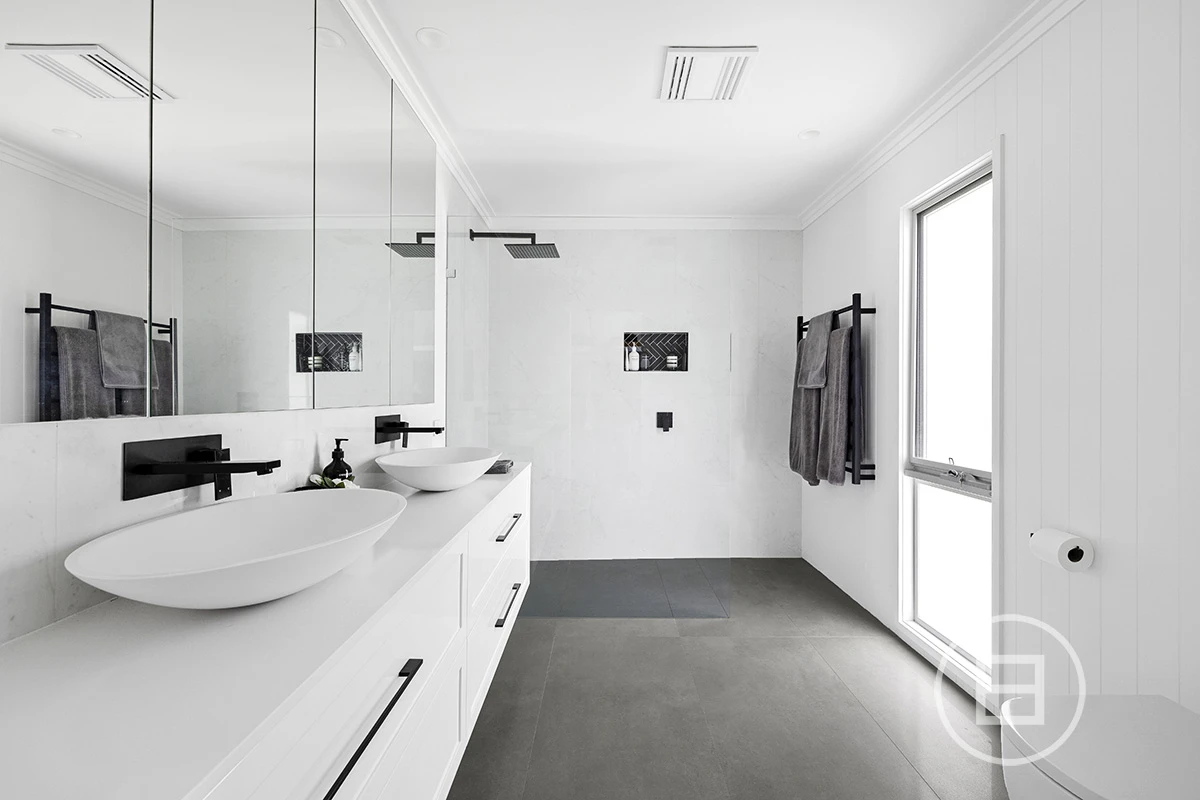The east facing master bedroom overlooks the ocean and it’s oversized ensuite with double vanity is accessed via a cleverly designed walk-in robe.