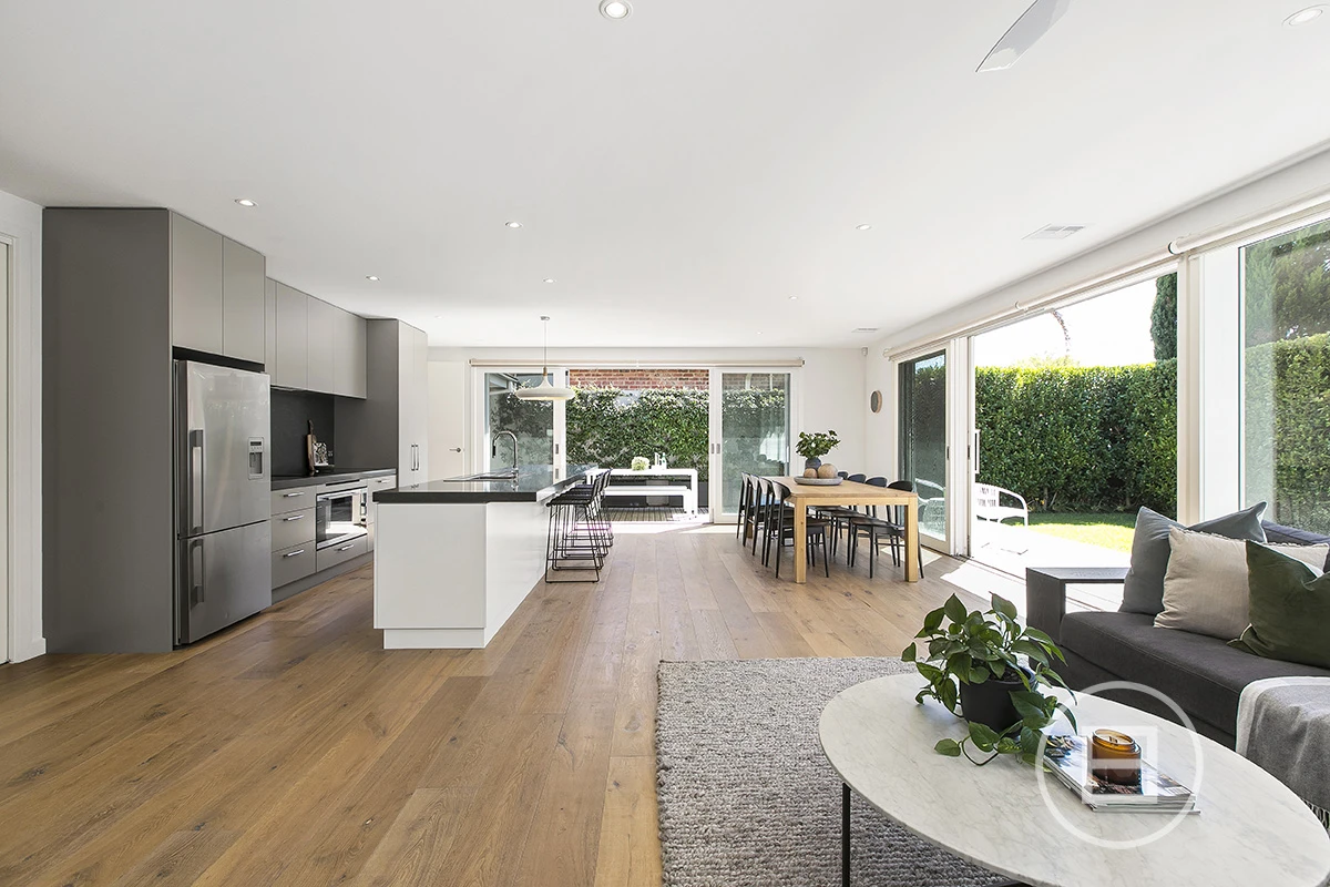 Here’s a four-bedroom, two-bathroom family home that’s as good as new. You don’t need to do a thing. Beyond the entry hall, find the living room, first bedroom, second bedroom and separate bathroom, followed by a master retreat, huge walk-in robe and ensuite with freestanding bath and feature tiles. A light-filled, open plan living area is the heart of the home. The kitchen with stone benchtops and breakfast bar, soft-closing cabinetry and butler’s pantry make the space family-friendly. The double-glazed sliding doors allow the bay breeze flow through. Additional features include: wide timber floorboards, study with built-in desk and fourth bedroom. There’s also a double lock-up garage and plenty of storage. And what a location. It’s just off Dendy Street and a short walk from Brighton Golf Course and Dendy Park.