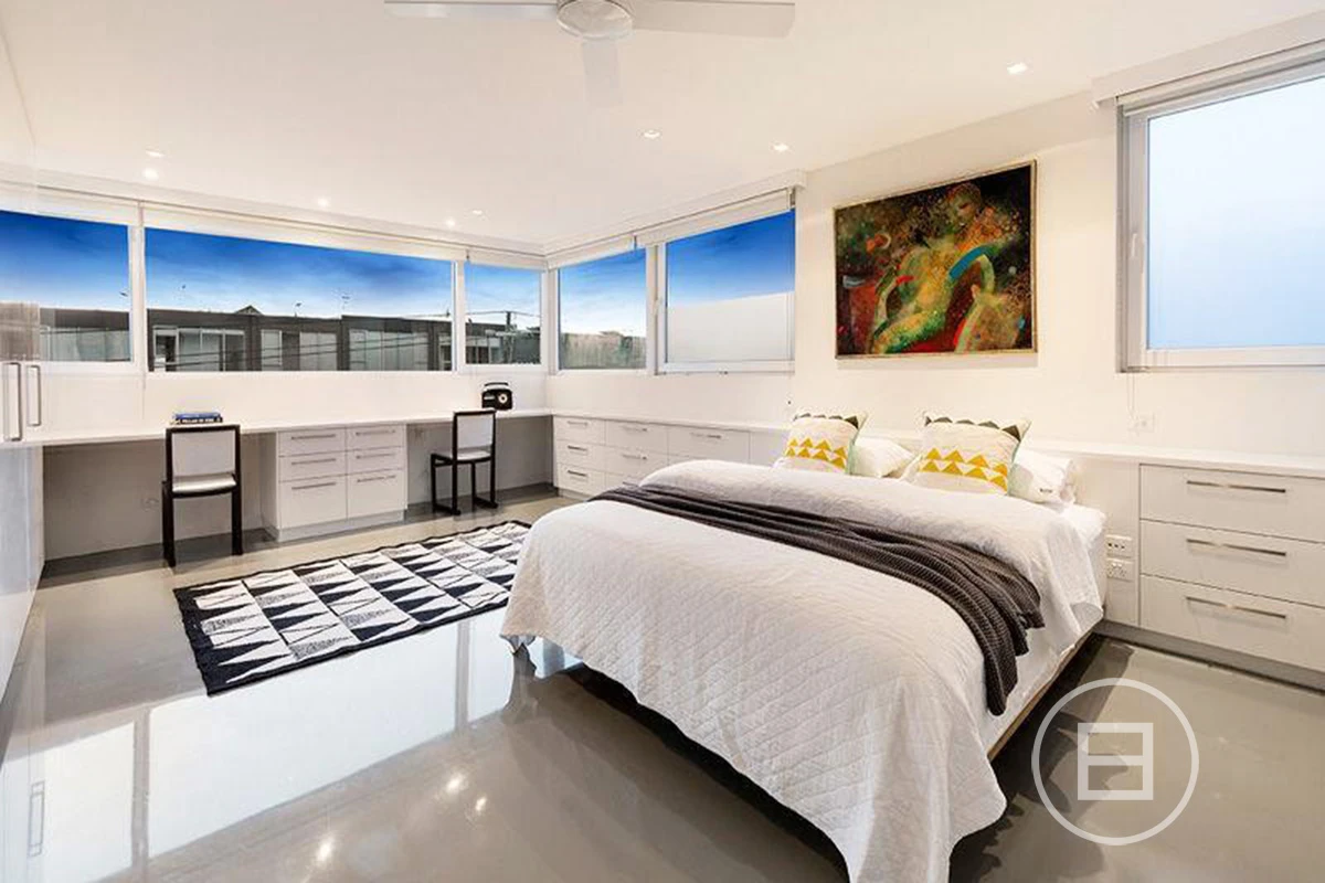 Architecturally designed three bedroom townhouse with city views in a prime Prahran location. Entering via your three car garage, you have the option of stairs or lift to take you up to the first floor featuring the light filled open-plan kitchen and dining, along with a home theatre or third bedroom. Upstairs you will find the generously sized second bedroom and en-suite, second living area with integrated bar, opening up onto the north facing deck. The master bedroom takes up the entire third floor, with built-in robes, desk and en-suite.
