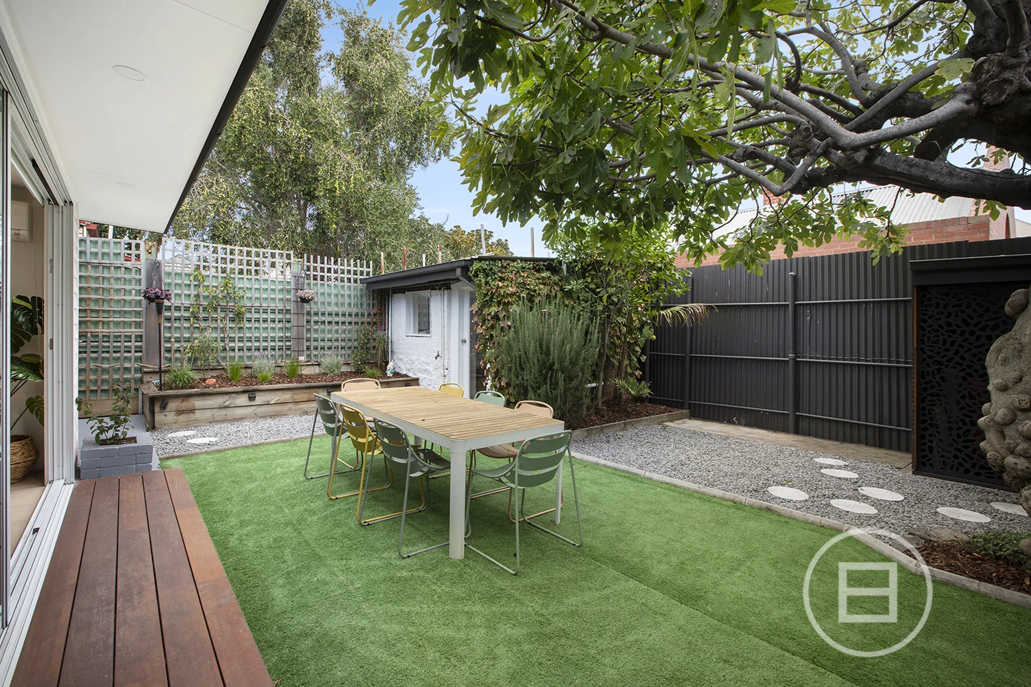 The central hallway flows into a spacious living room, with three generously sized double bedrooms, including an ensuite off the main bedroom, and a large central bathroom. The well-appointed kitchen and light-filled dining area open seamlessly to a private, paved northwest-facing garden, complete with a freestanding workshop/laundry. Convenient off-street parking adds to the appeal of this delightful property.