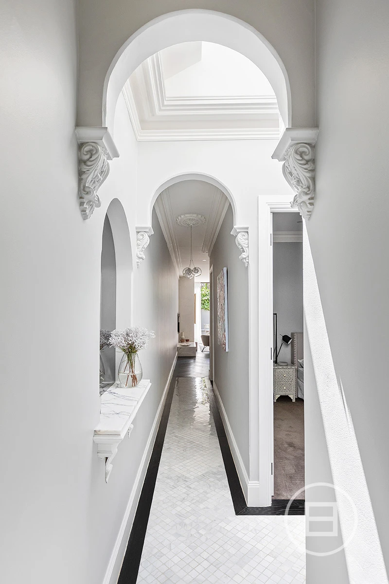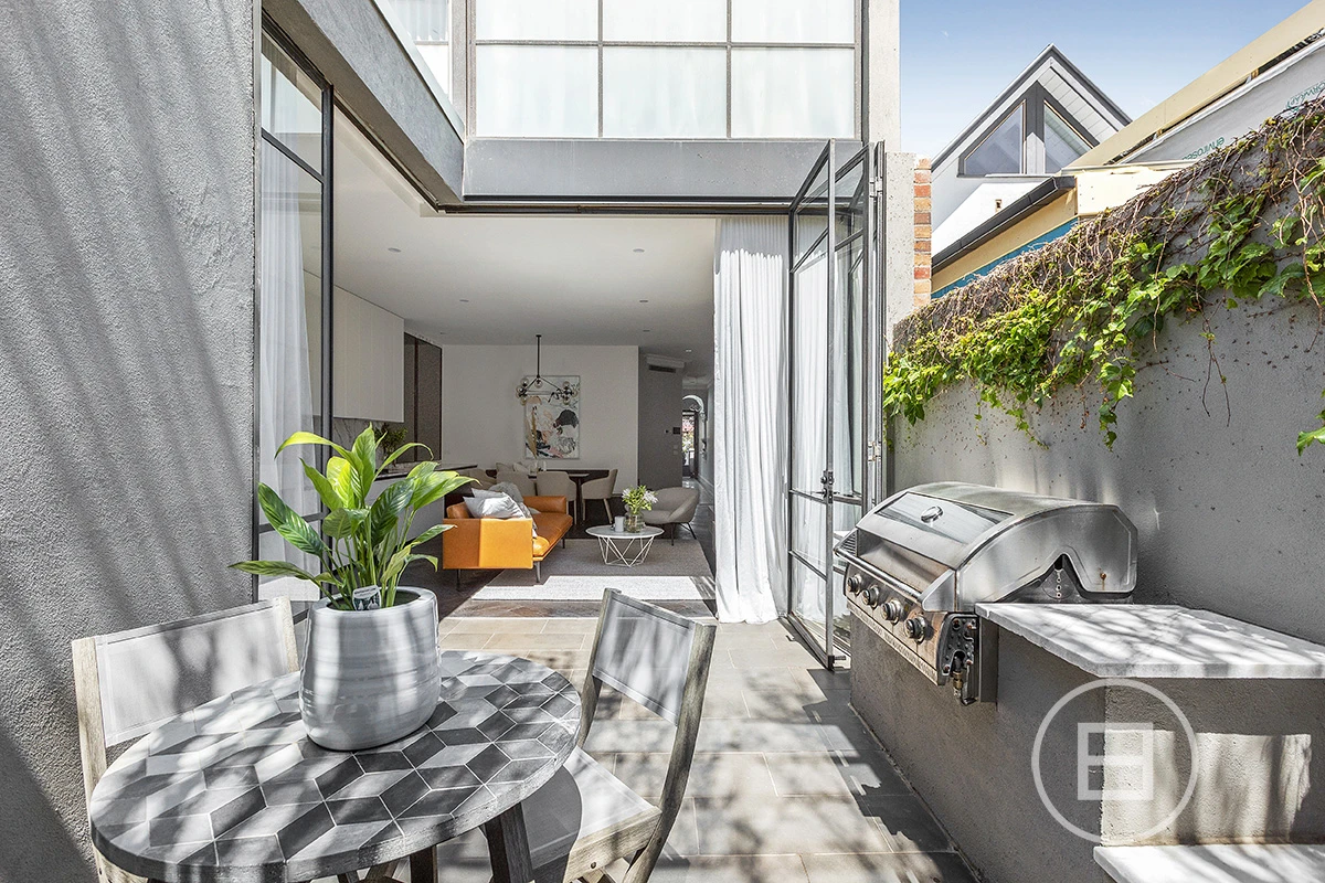 The elegance begins from the Victorian facade and flows effortlessly throughout this designer home. High ceilings with intricate roses and archways sets the tone against a stunning marble floor with feature entry sideboard and herringbone hardwood floors. The two front bedrooms are what you would expect from a home of this era. Large and with beautiful sleek cabinetry. The central bathroom is simply stunning with free standing bath, contemporary lighting and natural stone tiles with the practicality of a double vanity. The open plan north facing rear living room is an entertainers dream with feature steel windows framing the perfect outdoor BBQ area which flows effortlessly into the living and dining. The timeless kitchen is clad in marble and with integrated appliances, butlers pantry and walk in laundry its evident that no detail has been overlooked during the construction of this home.