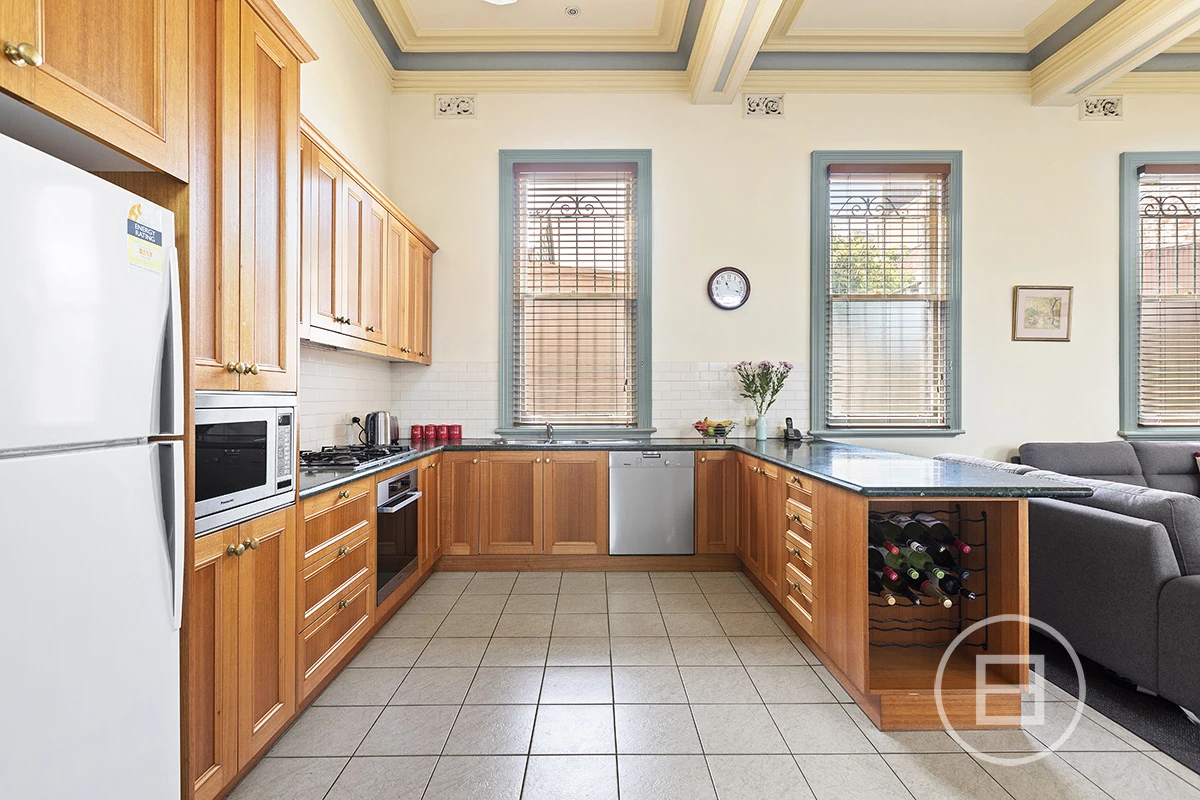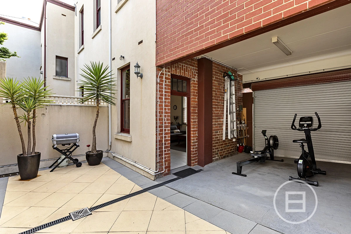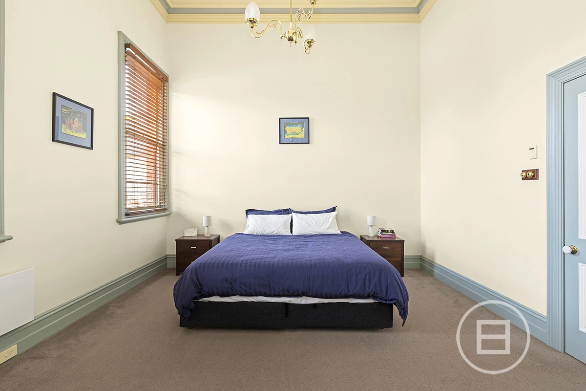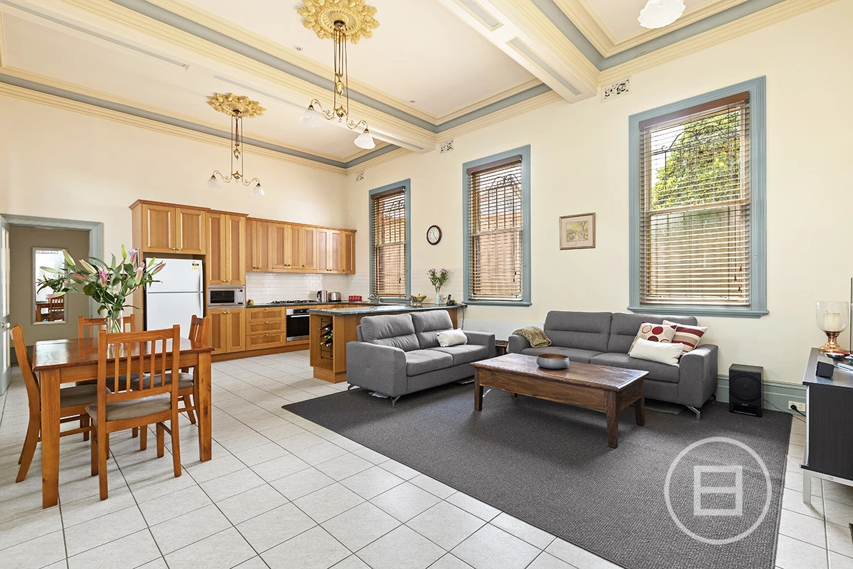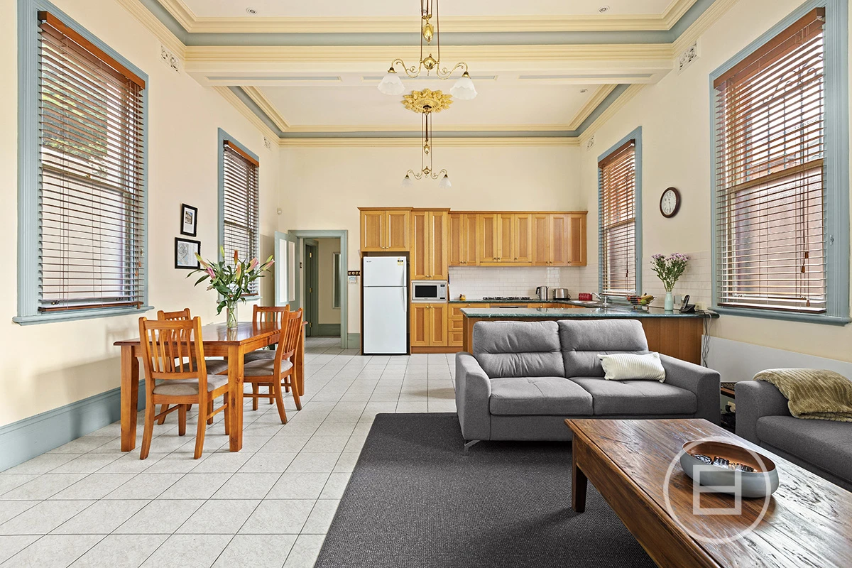Simply one of a kind. Soaring 16ft ceilings takes your breath away the moment you walk inside. This converted mansion is unique, practical and incredibly located on the doorstep of the South Melbourne Market with plenty of scope to add value. The downstairs area occupies a massive open plan kitchen, living and dining zone with east facing windows. The garage parking and 20+ metre long courtyard is accessed and flows effortlessly from the living and entertaining space.