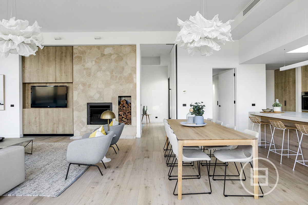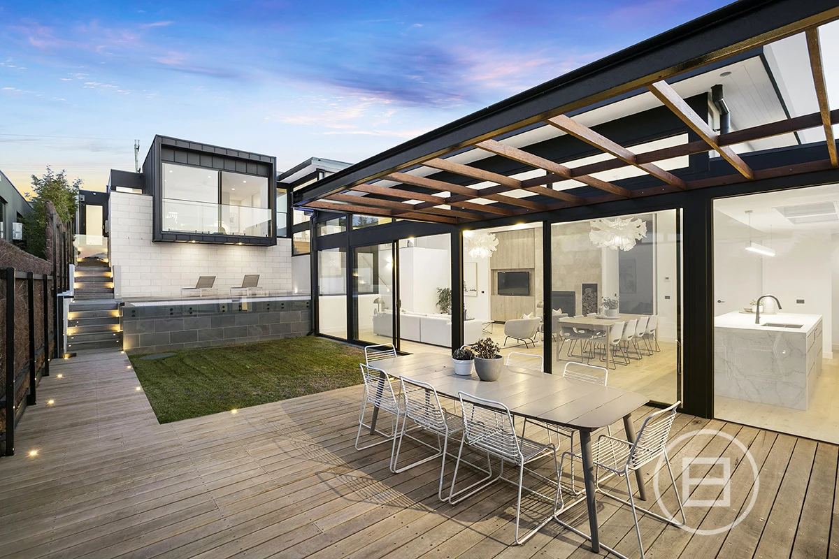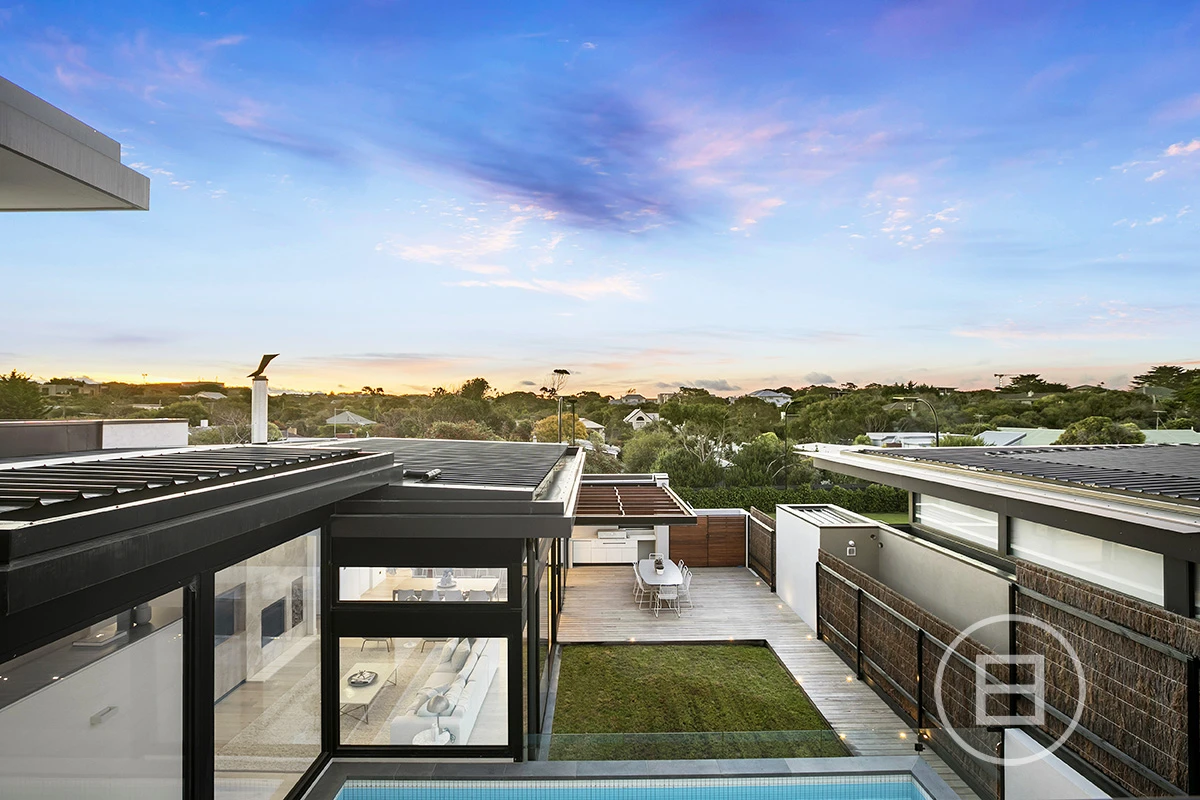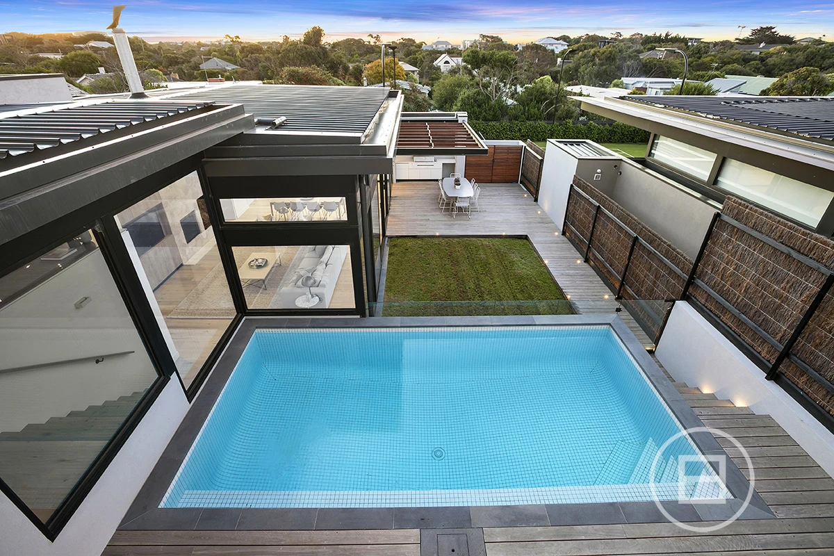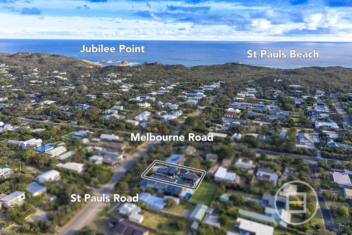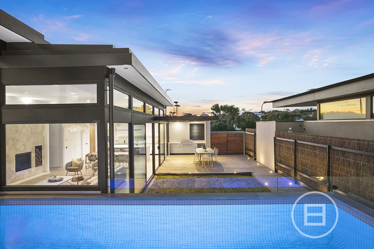 The final word in Mornington Peninsula lifestyle – this is a brand-new build with all the trimmings. This architecturally designed split-level home on 710sqm of land has five bedrooms, each with private ensuite, which creates distinct accommodation zones for guests and extended family. There are two huge living areas including an open-plan meals and living room with north-facing glass windows, as well as a second retreat or living space. The kitchen is fitted with Miele appliances, integrated fridge, Caesarstone benchtops and feature lighting. Interior style extends outdoors with in-ground pool, spotted gum timber decking, six-burner gas barbeque, fridge and additional external bathroom. Completed by an experienced residential developer, it’s packed with quality inclusions: solar panels, electronic front gates, remote double garage, skylights, wi-fi security system, heating and cooling throughout. It’s in a prime position, an equal distance between the front and back beach. The residence is close to Main Street and St Paul’s Road General Store.