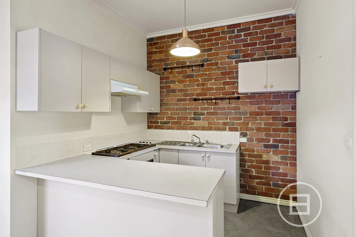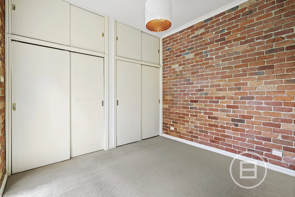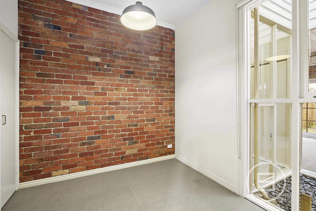 At the rear of the property sits the main bedroom with built-in robes and a small en-suite. Exposed brick walls feature throughout the entire home.