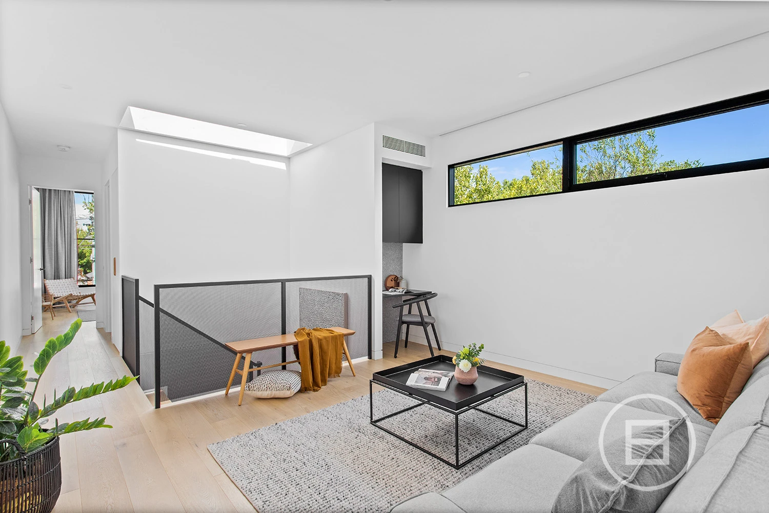 Upstairs of the residence you’ll find a large second living area which separates 2 further large bedrooms and a main bathroom with freestanding bath.