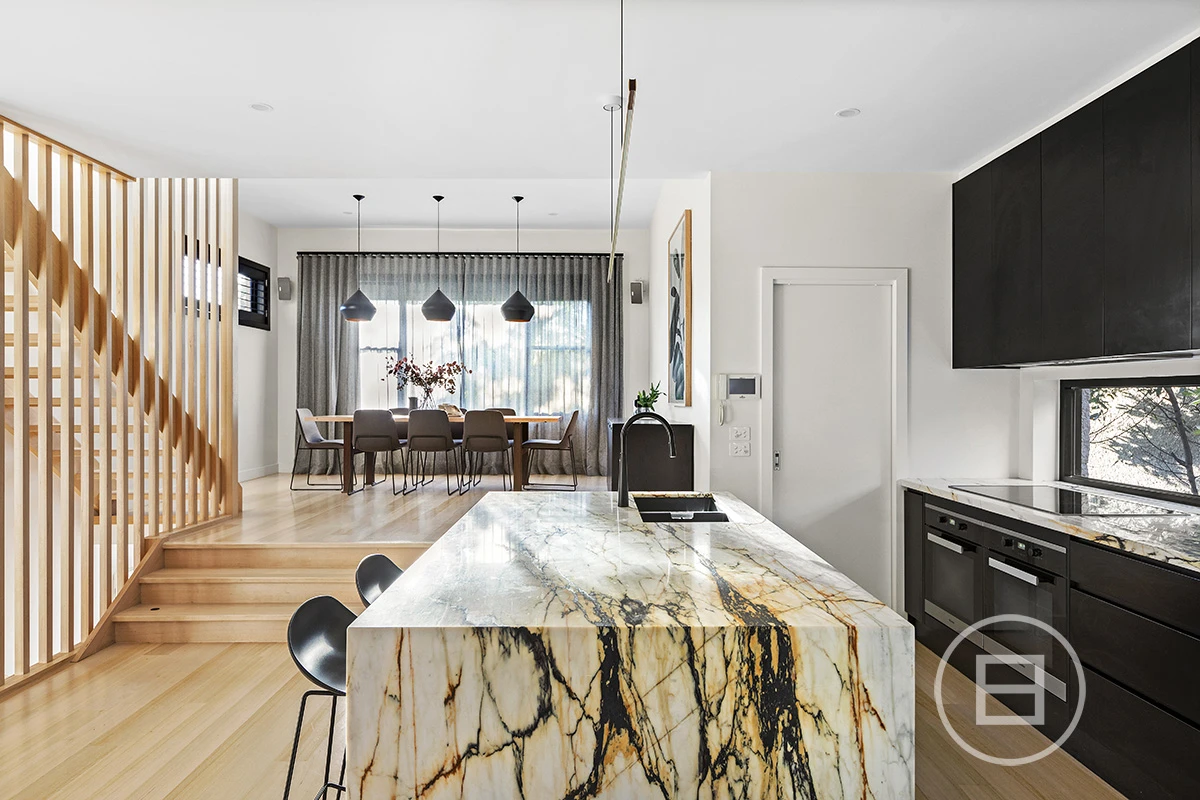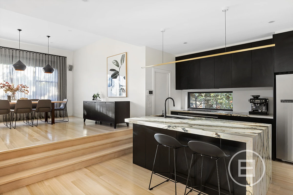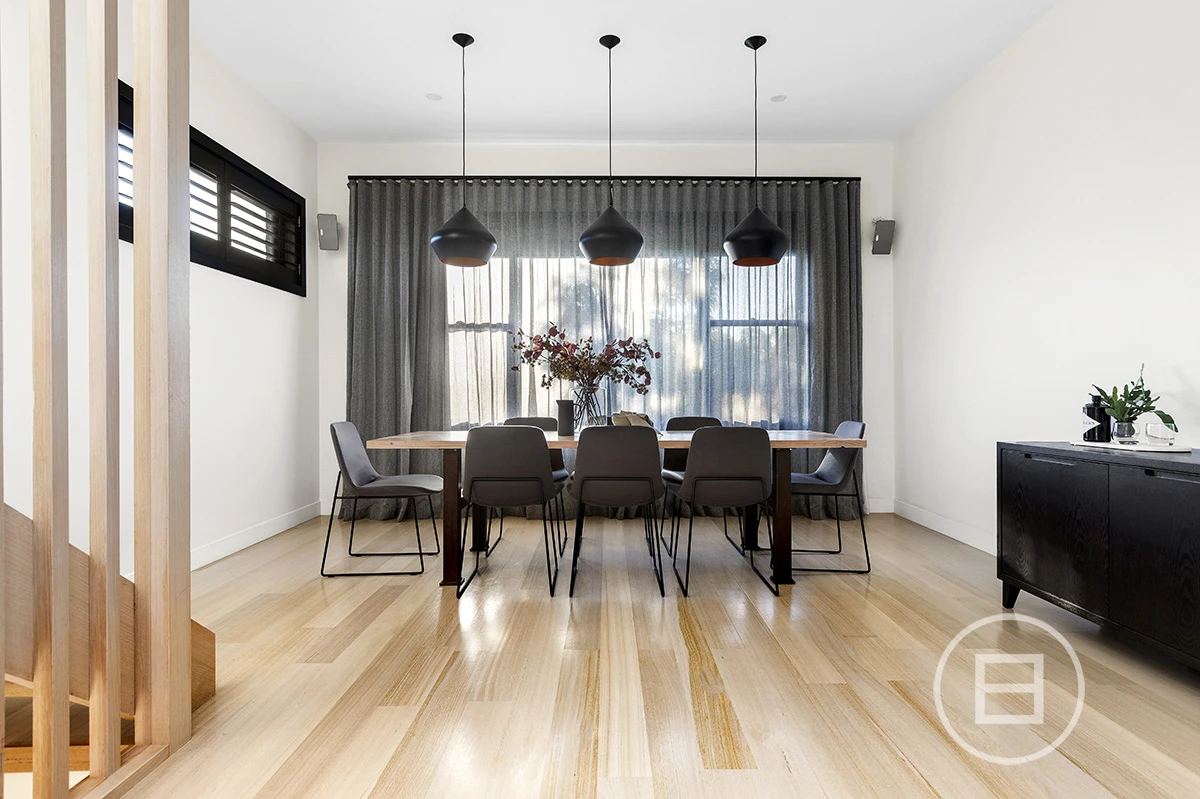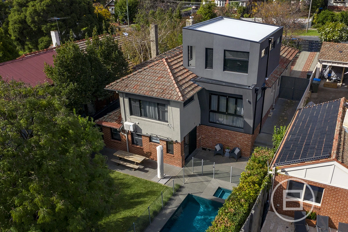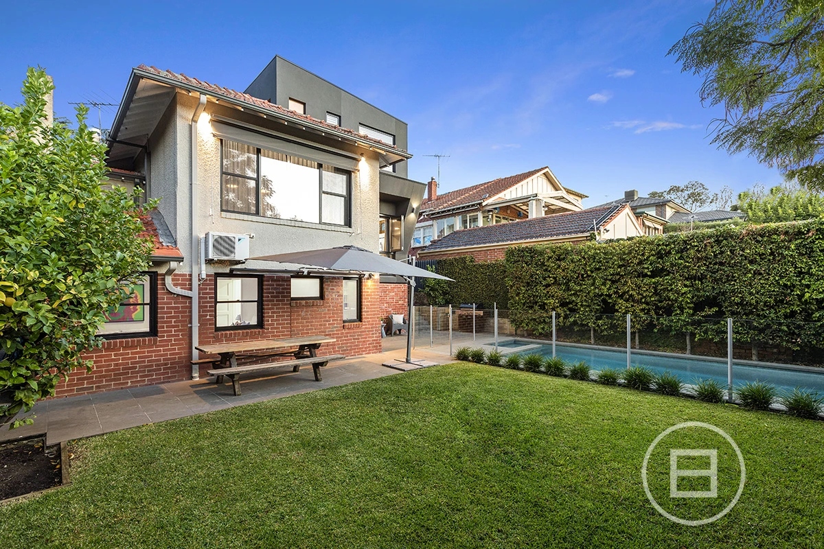 An original Californian Bungalow style home with a stunning extensive renovation, is this 5 bedroom family home set on 579sqm. After entering via a beautifully landscaped garden, the entrance of the home features 3 metre high ceilings and three large bedrooms, all with built-in robes and original ceiling detail.