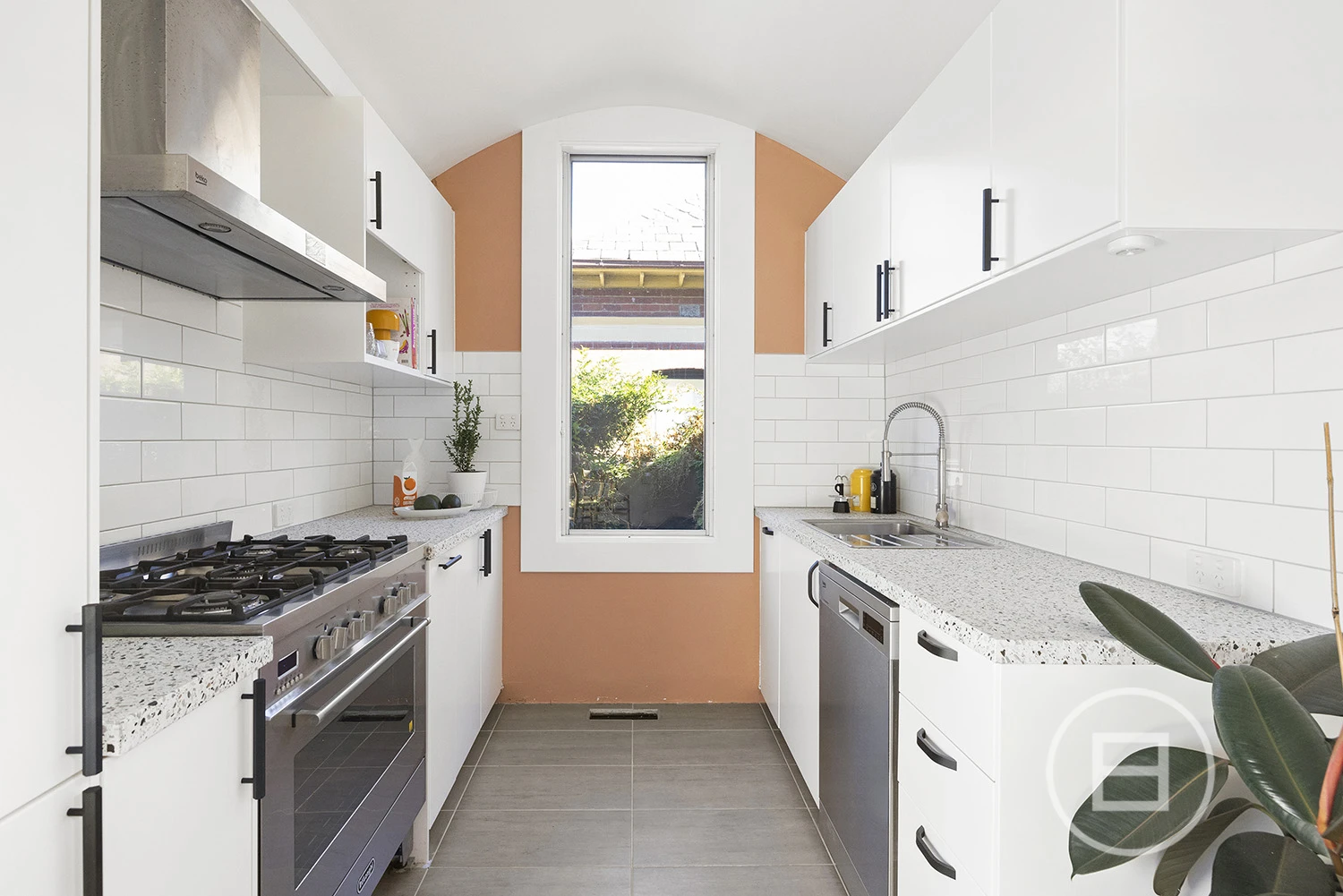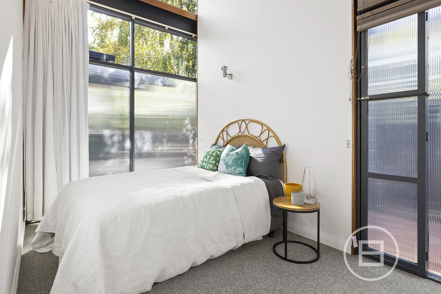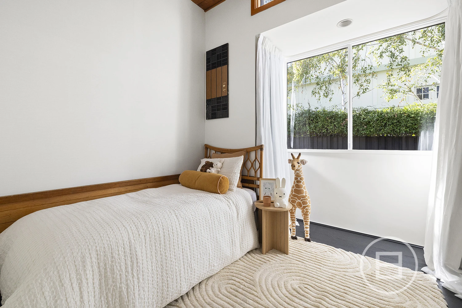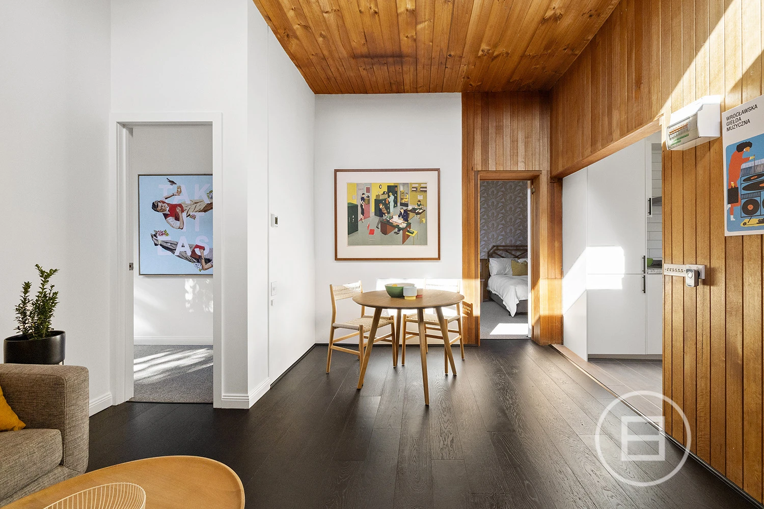 ‘Judy’, set behind a high front fence and overlooking a serene private garden, offers three bedrooms plus a study nook and features an interior defined by original teak timber panelling, bespoke wallpapers, and floor-to-ceiling windows. The layout includes a large kitchen and meals area, a spacious living room, a main bedroom with built-in robes and ample storage, a second bedroom with a study nook, a third bedroom, and a main bathroom with laundry and additional storage. Brand new carpet and timber floors, high-end kitchen appliances, gas ducted heating, a new heating system, air conditioning, a dishwasher, two private entrances, and a private courtyard with an established garden complete the offering. Two undercover car spaces are also included.