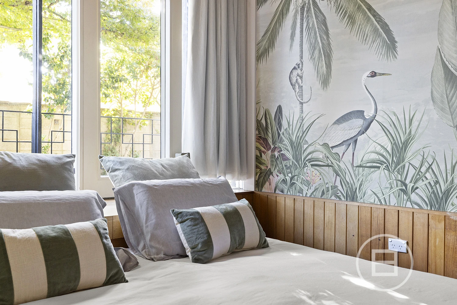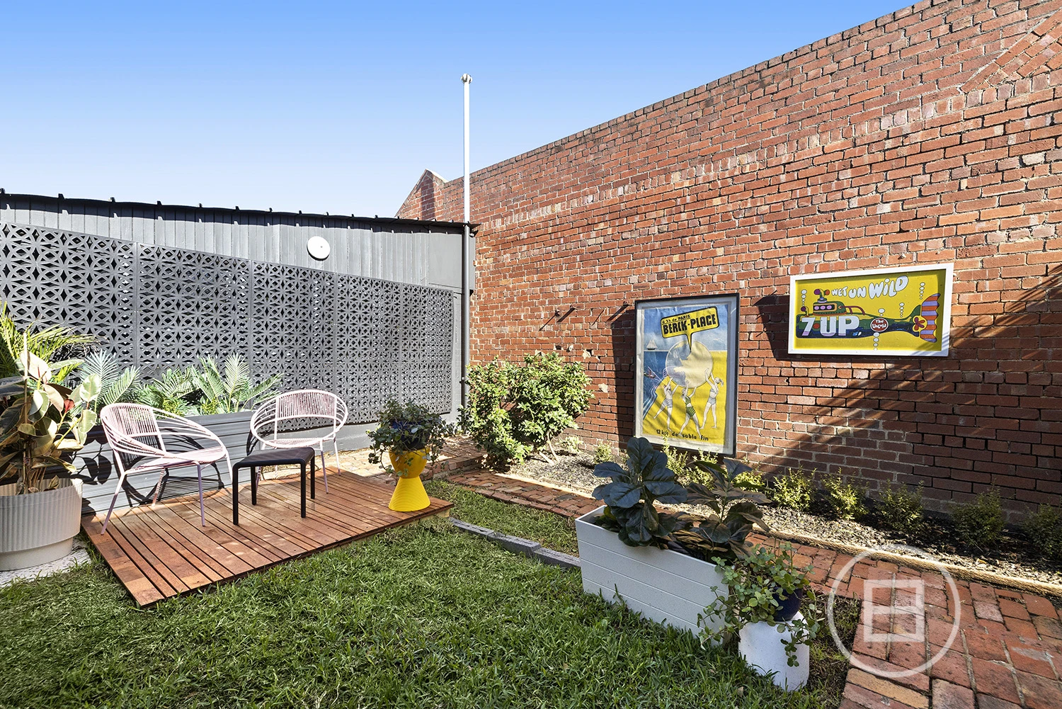 To the rear, ‘Liza’ is a separate two-bedroom residence with a huge private courtyard and interiors made memorable by the same original timber panelling, touches of terrazzo, and an abundance of natural light. It comprises a main bedroom with generous storage, a second bedroom, a light-filled living and meals area, a separate kitchen with freestanding cooker and dishwasher, and a large bathroom and laundry with both shower and bath. Additional features include new timber floors, new carpet, ducted heating, an air conditioning unit, and two undercover car spaces.