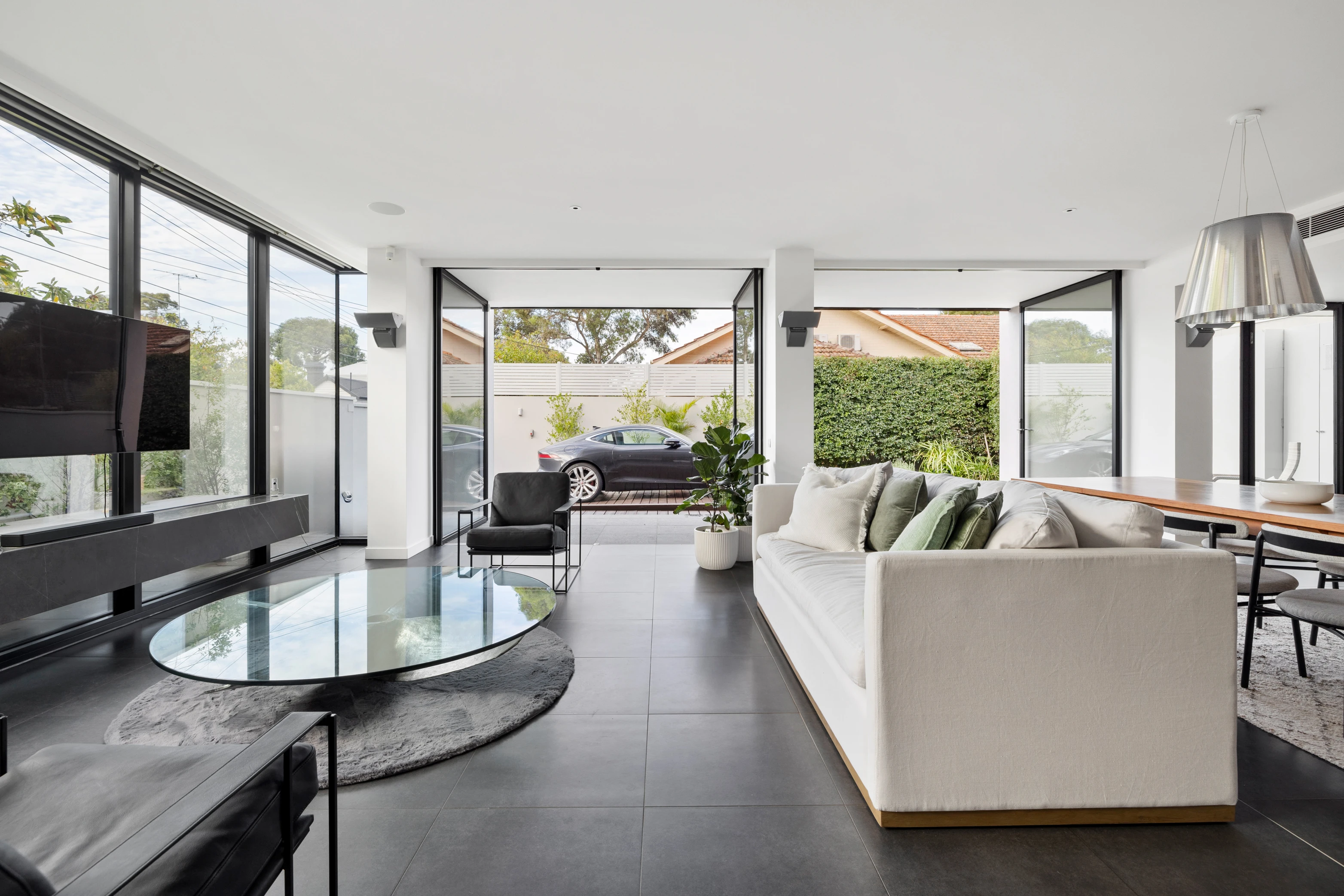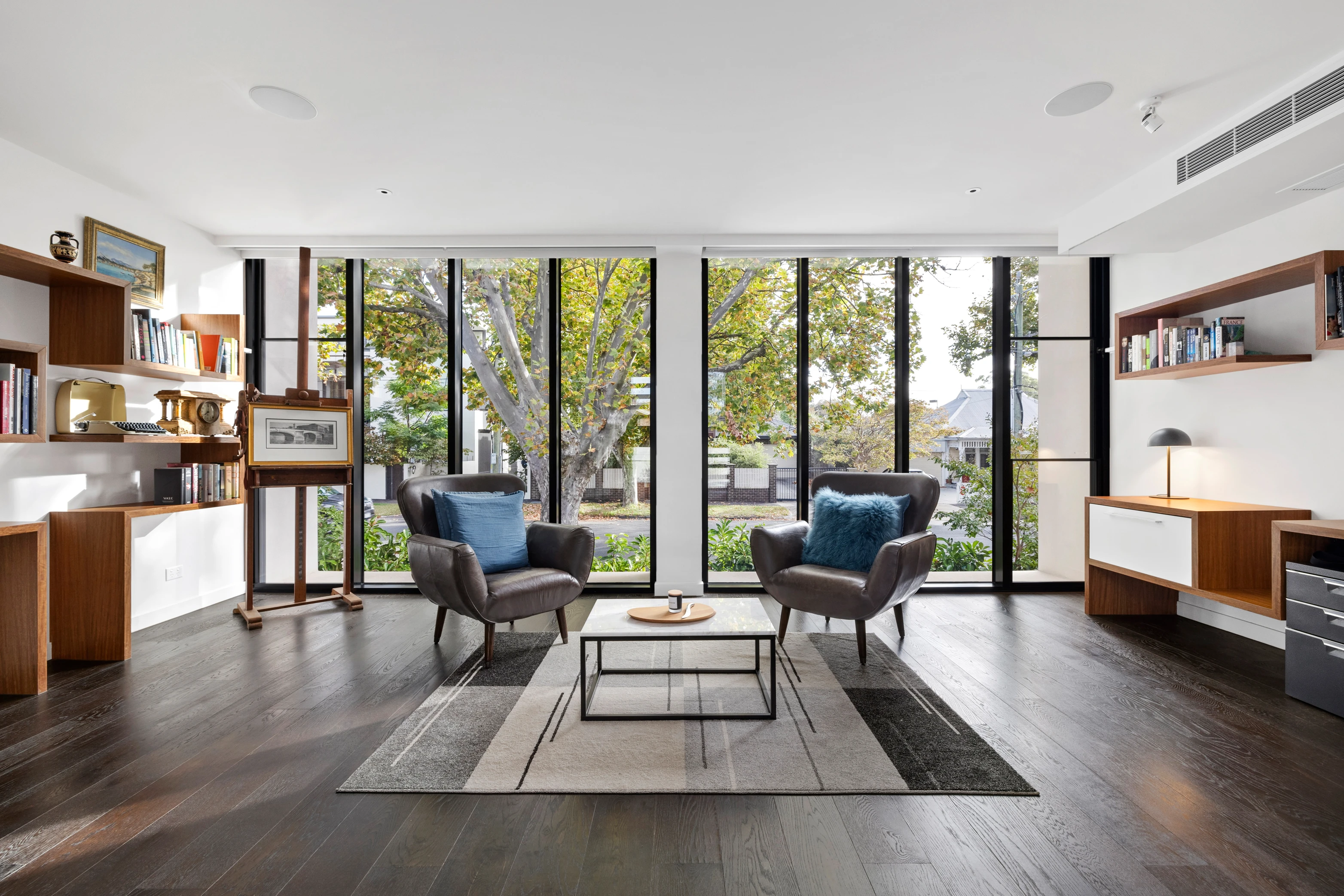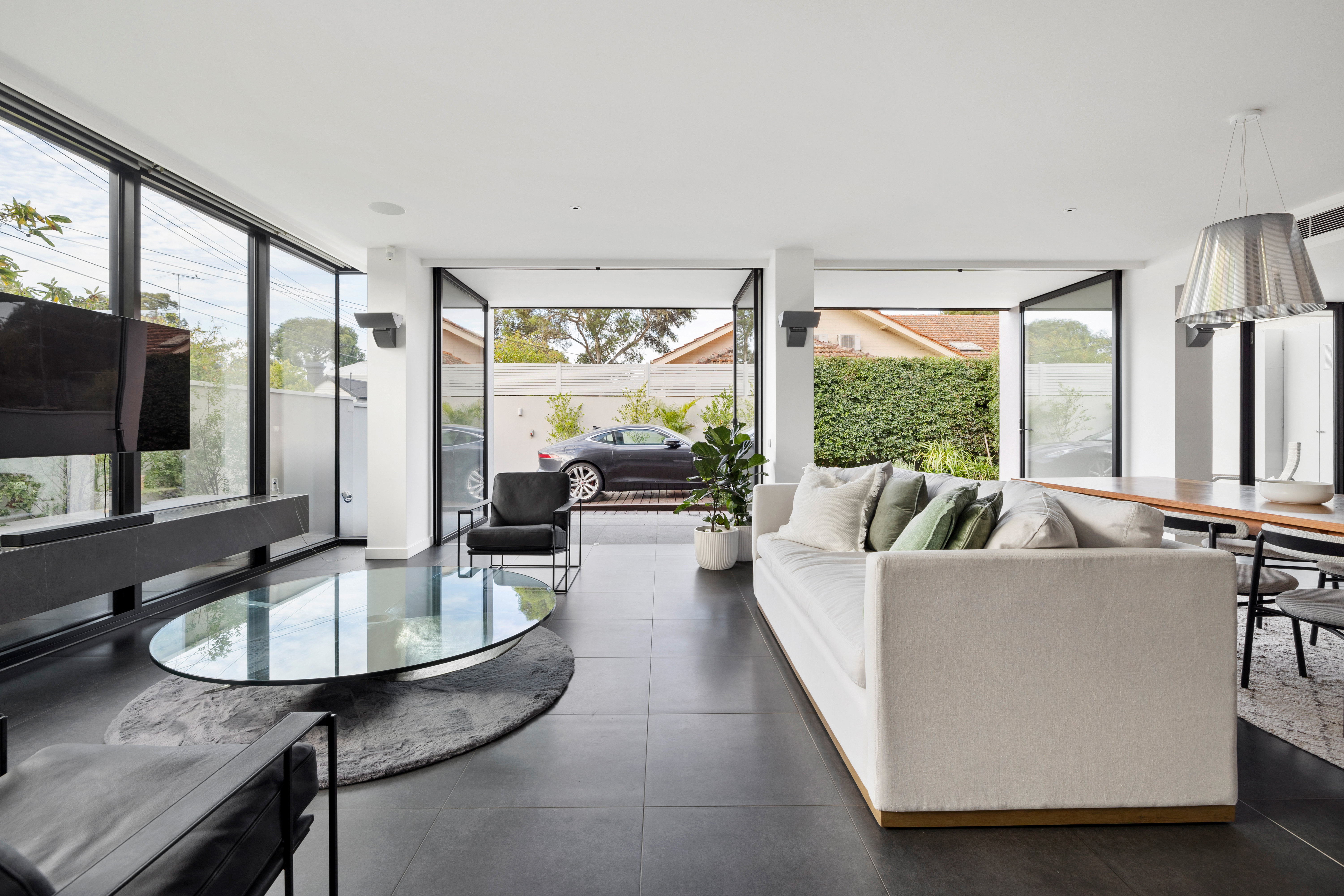 The exceptional split-level interior creates a sense of depth and dimension, making you feel like you're living in a work of art. Descend to the lower-ground level to find a substantial basement cinema featuring gold-class quality leather chairs, a bar and surround sound, plus a gym/guest bedroom with storage. The main upper accommodation level houses two spacious bedrooms, instilling a sense of tranquillity and comfort with their generous proportions, balcony access and onyx vanities in the adjoining bathrooms.