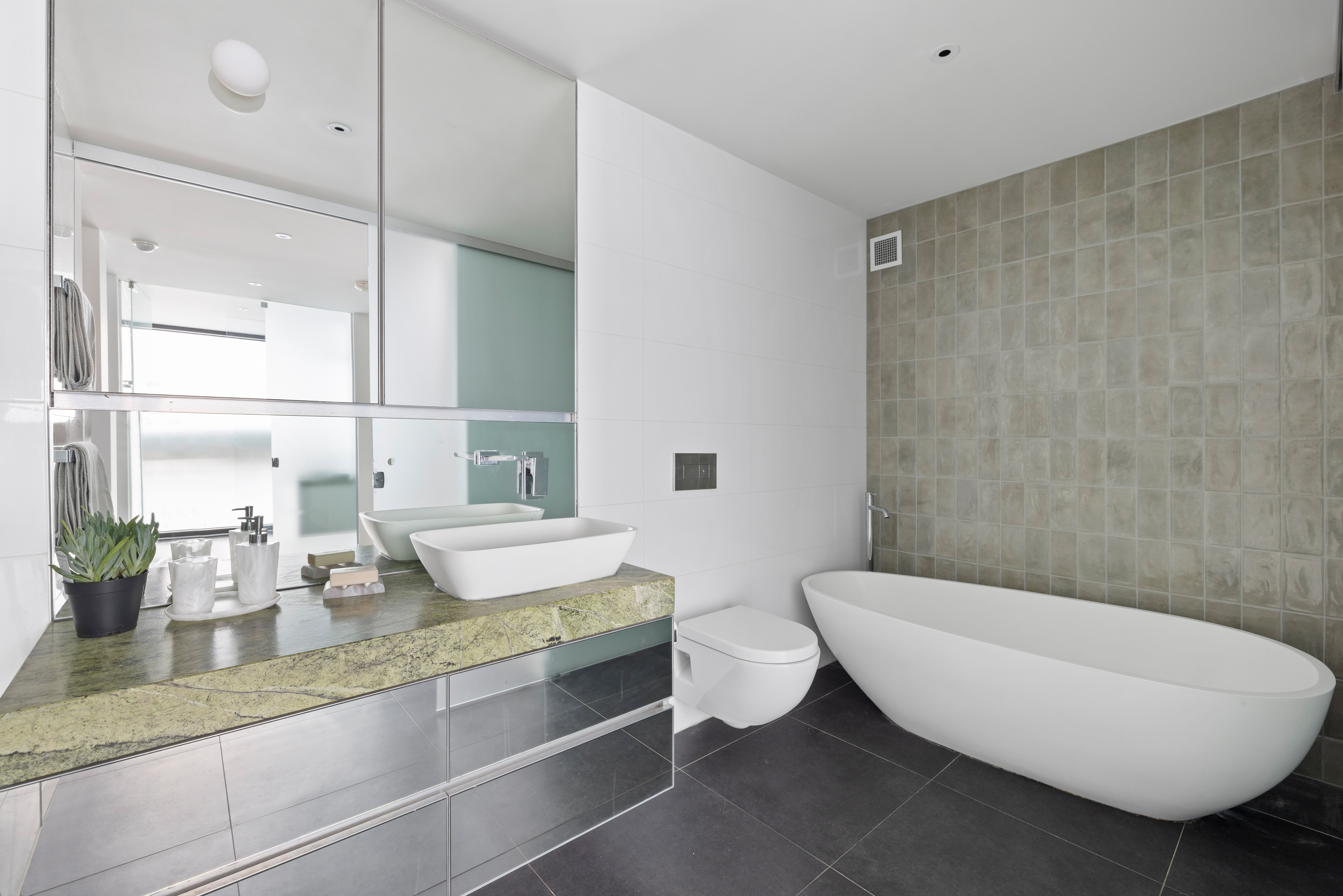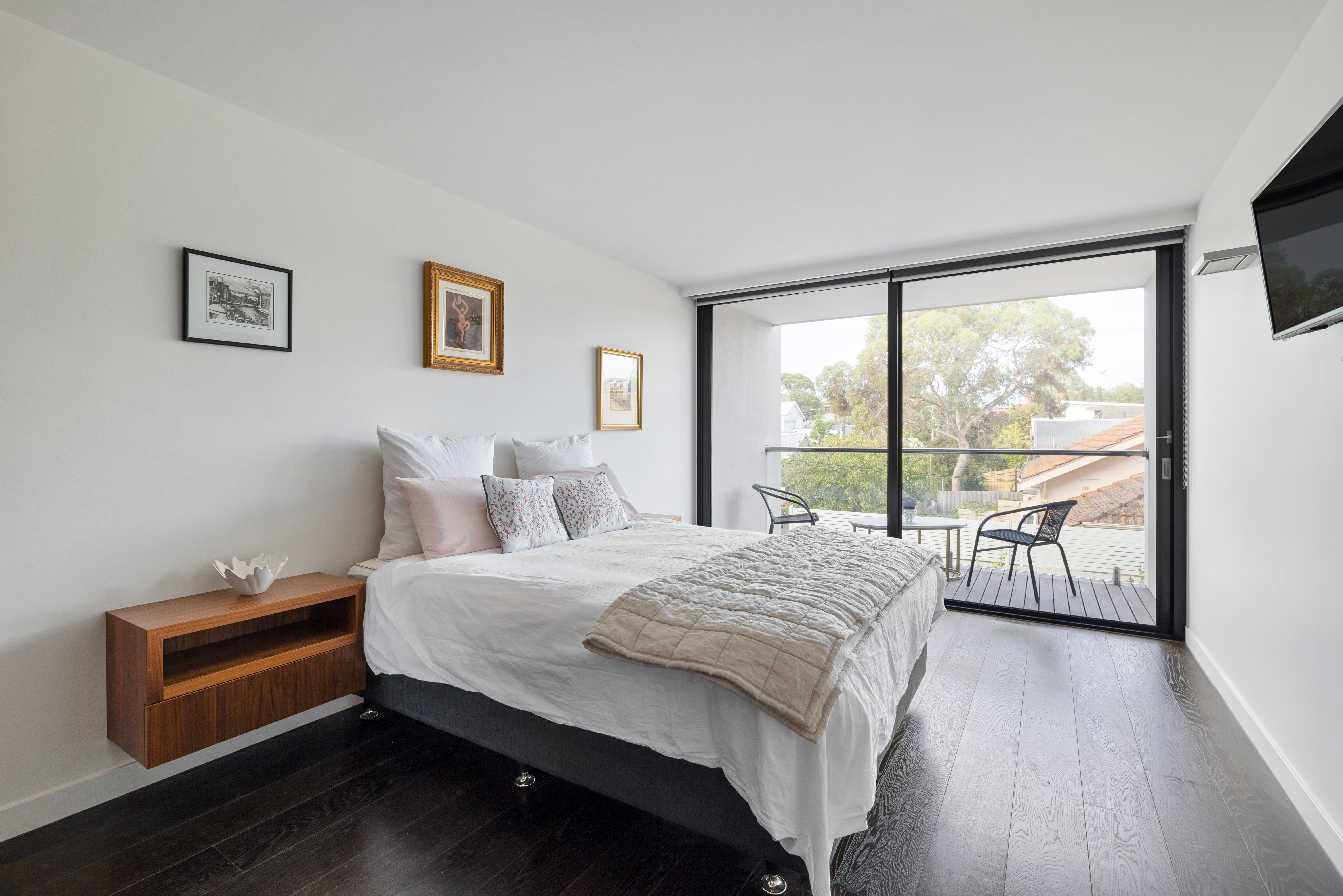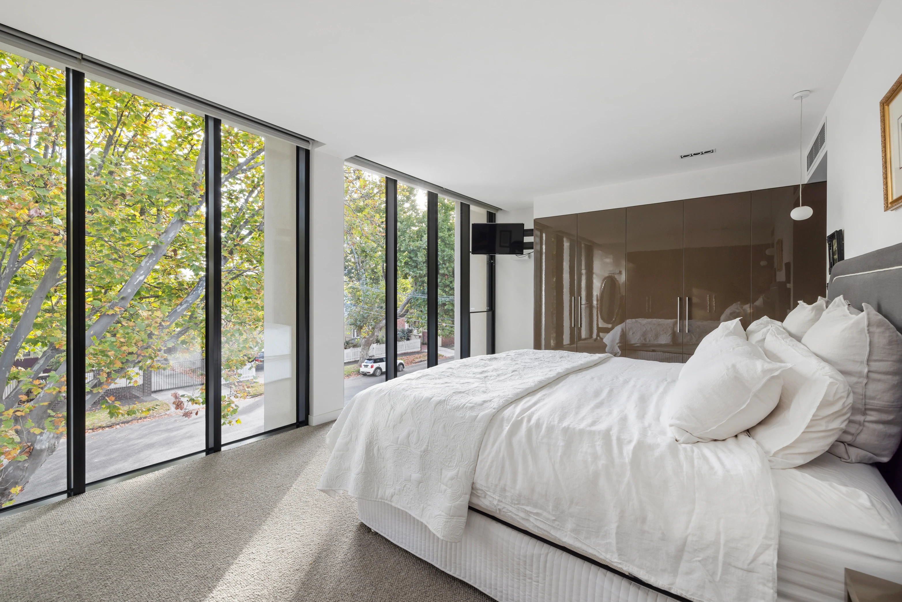The exceptional split-level interior creates a sense of depth and dimension, making you feel like you're living in a work of art. Descend to the lower-ground level to find a substantial basement cinema featuring gold-class quality leather chairs, a bar and surround sound, plus a gym/guest bedroom with storage. The main upper accommodation level houses two spacious bedrooms, instilling a sense of tranquillity and comfort with their generous proportions, balcony access and onyx vanities in the adjoining bathrooms.