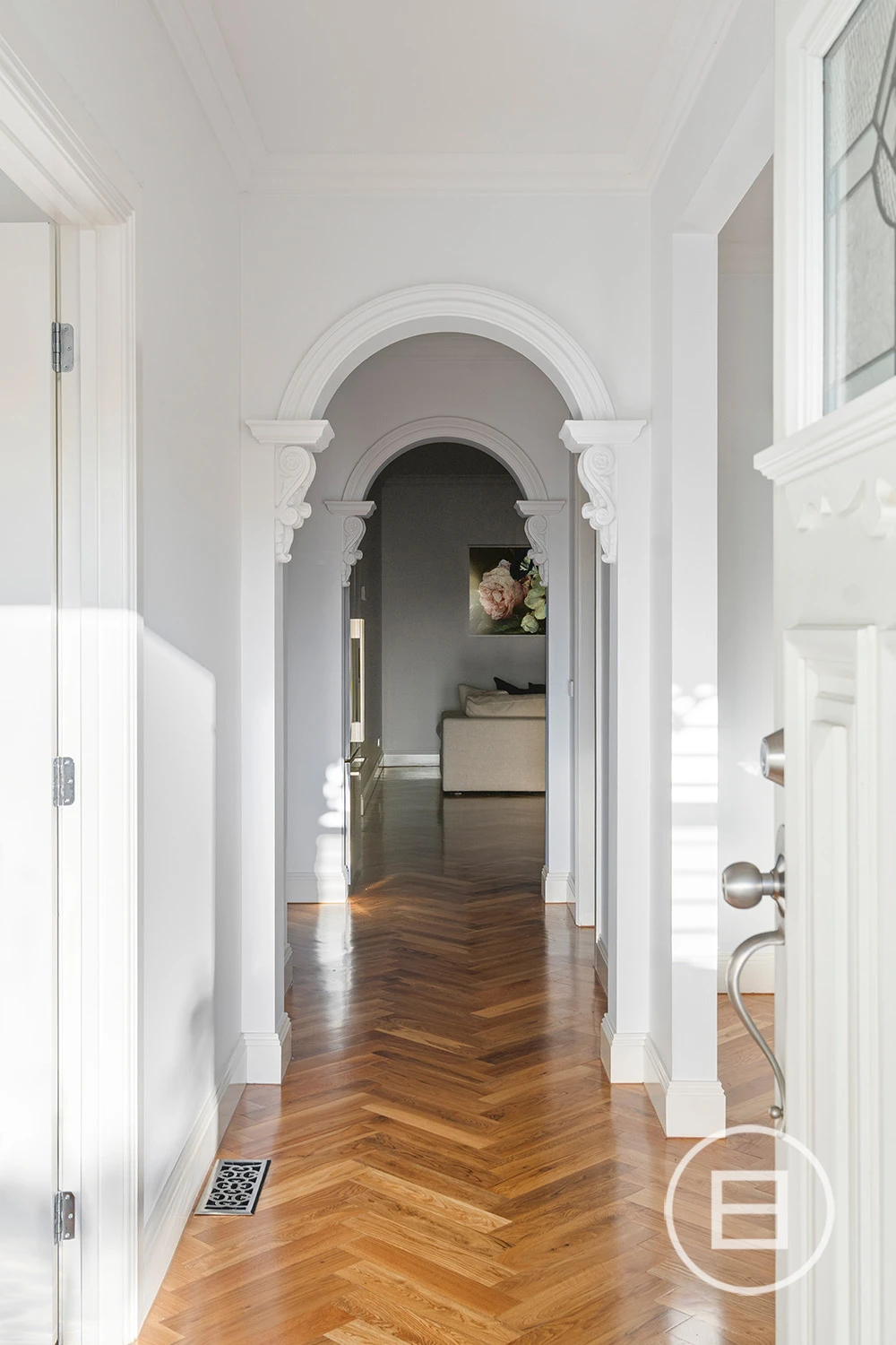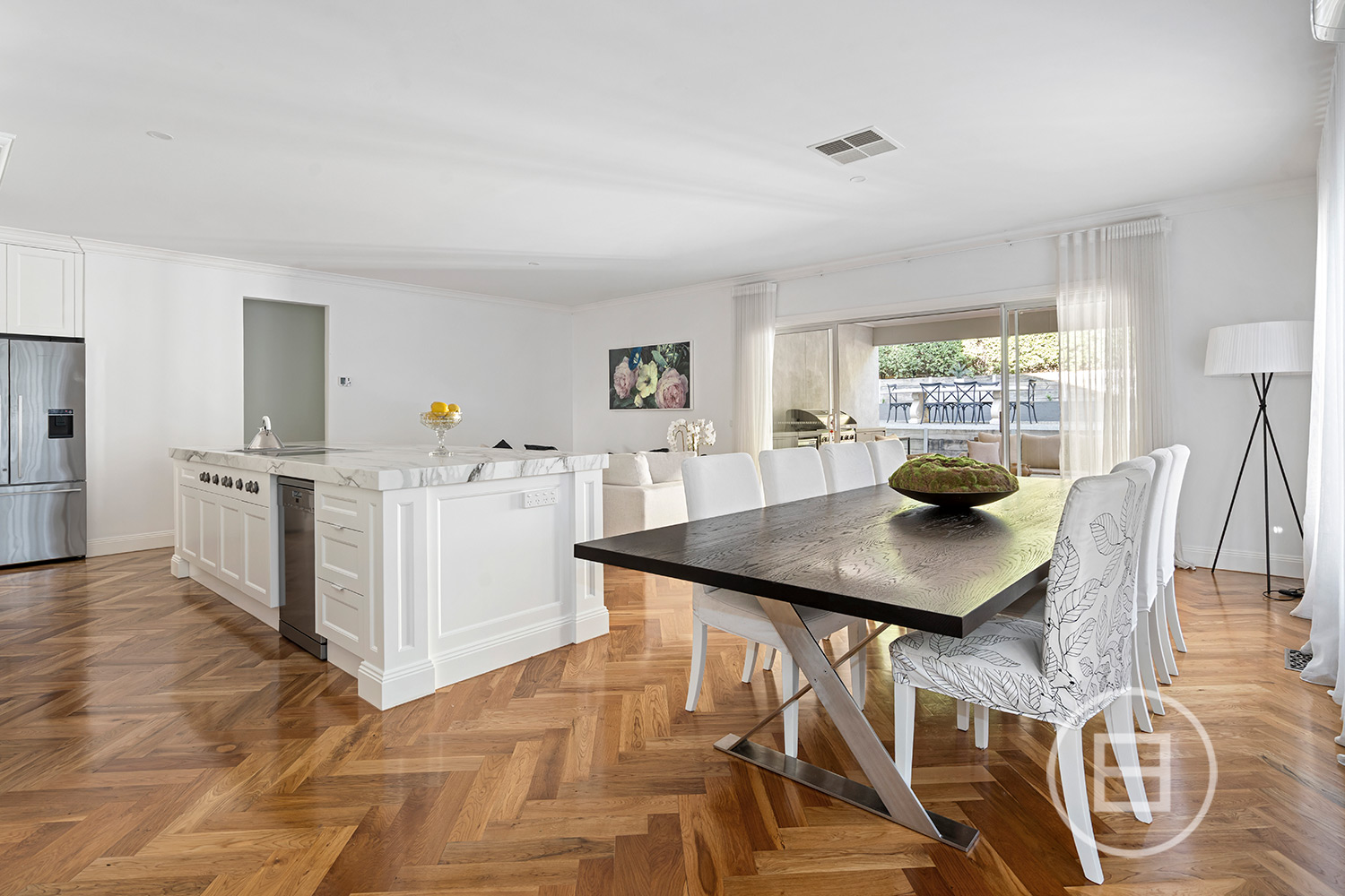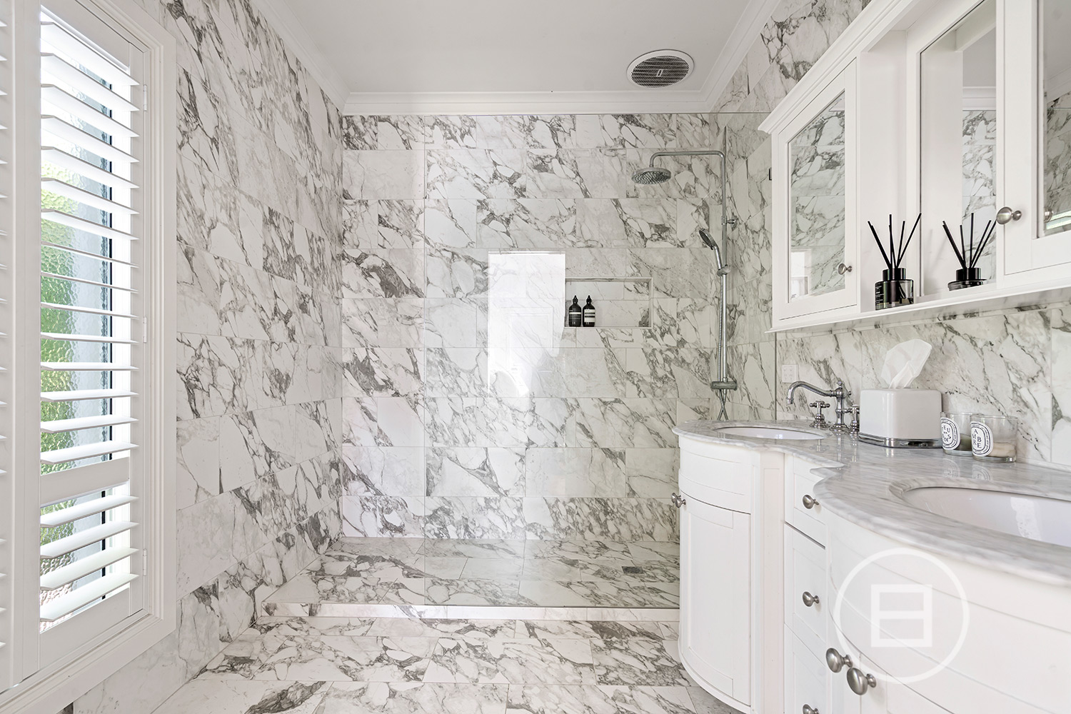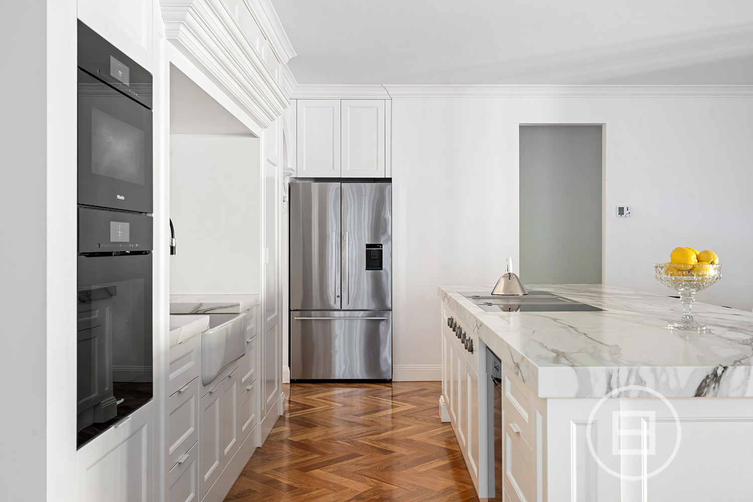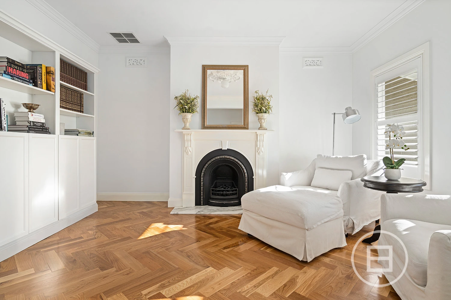With its lush gardens and classically inspired façade quick to leave an impression, a grand entrance hall’s two arches, elaborate cornices, and herringbone European oak parquetry flooring set a tone of class and prestige continued throughout. Featuring its own walk-in robe and lavish ensuite, a sumptuous front master is complemented by three broad, additional bedrooms, excellent built-in robe space, and a chic main bathroom with a bathtub and separate WC. Equipped with a fireplace for cosy winter nights, a quiet front living room complements a scintillating hospitality suite at rear where family and dining areas wrap around a statement kitchen boasting swathes of stone, masses of storage, and top-of-the-range Miele appliances. Sliding glass reveals a covered alfresco with an outdoor kitchen for family barbecues and drinks after dark, while total privacy from manicured hedges joins all-day sun in bathing an open-air lounge.