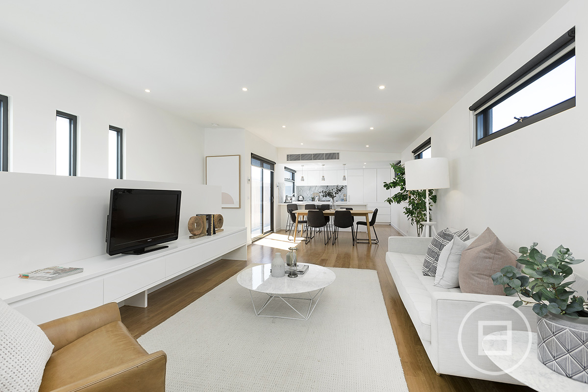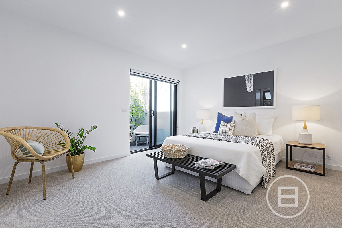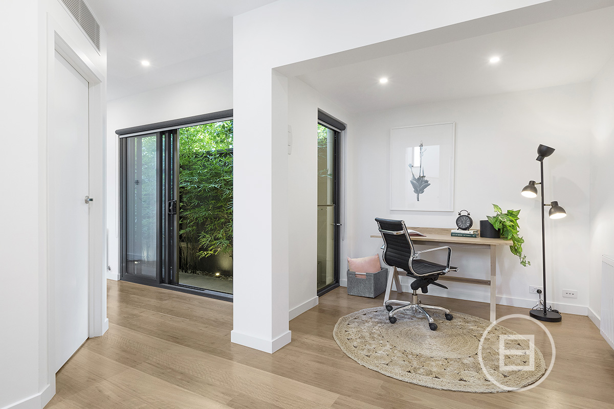 Tucked away down a European-like bluestone cobble driveway is this perfectly executed 3 bedroom, 3 bathroom home. Downstairs you will find a large 2 car garage, entry foyer, courtyard, study and 2 bedrooms; with upstairs showcasing a light filled living, kitchen and dining area and an unparalleled master retreat.