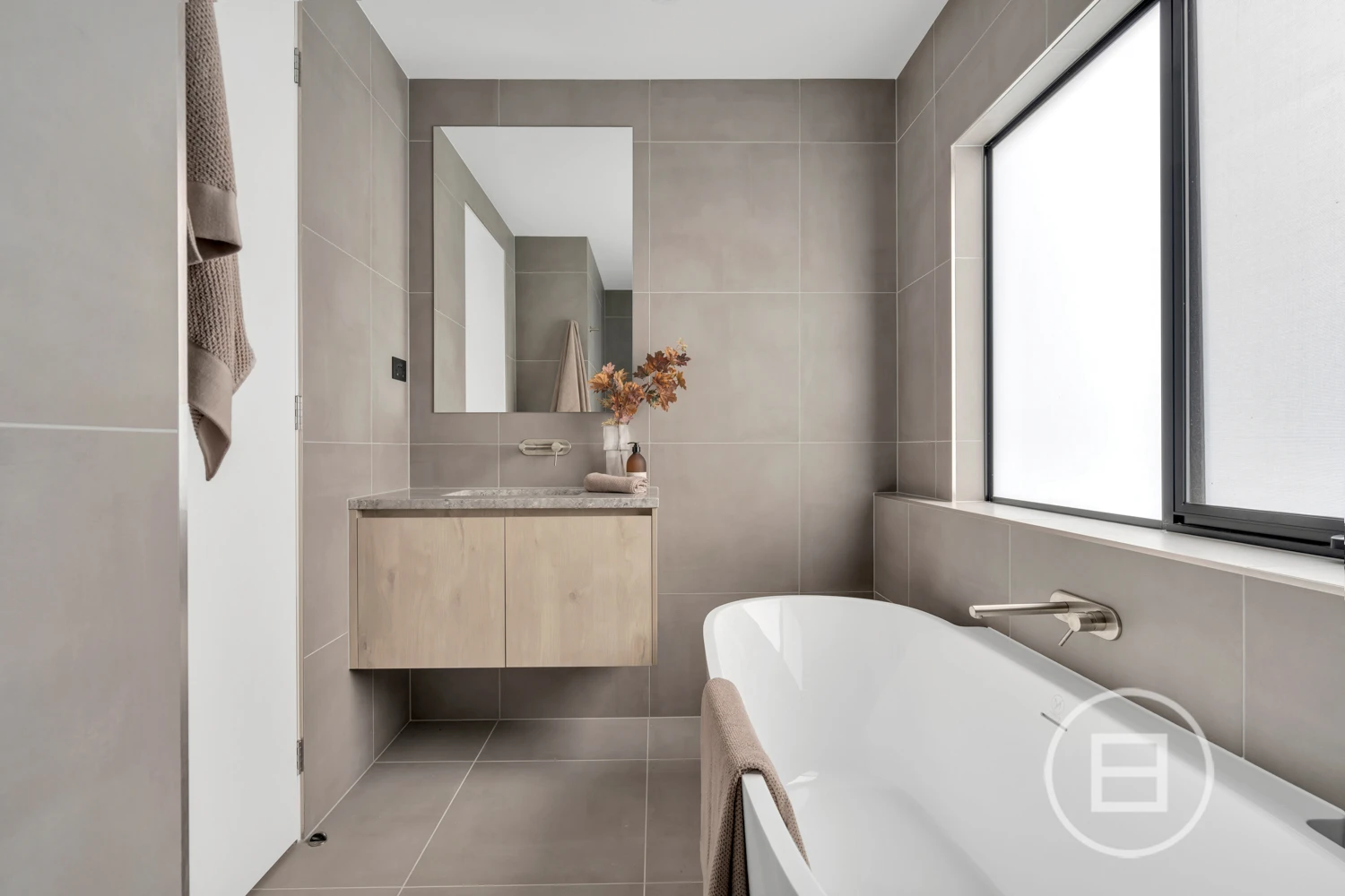 Fluted glass and imported Italian tiles offer luxurious points of distinction to the norm, with a chic main bathroom and dual-basin master ensuite, each with a soaker tub, built-in robes and ceiling fans in serving three substantial bedrooms. With no shared land or owners corporation, highlights include zoned ducted heating/refrigerated cooling, ample storage, NBN connectivity, a gas fire to living, video intercom, alarm, large laundry, lower powder room, remote-controlled garage, and additional driveway space.