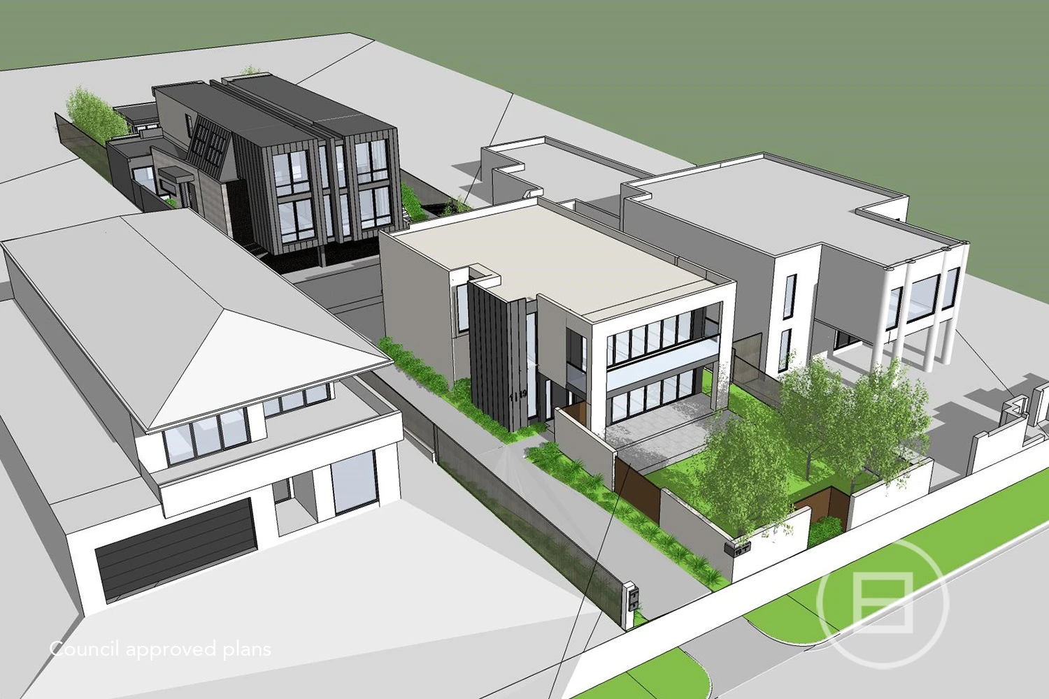 The design, envisioned by the esteemed Kalliopi Vakras Architects, features two residences that showcase streamlined style and tri-level zoning, set discreetly back from the street. The existing high-set home will be transformed into a modern family oasis, offering generous living space and a four-bedroom floorplan.
