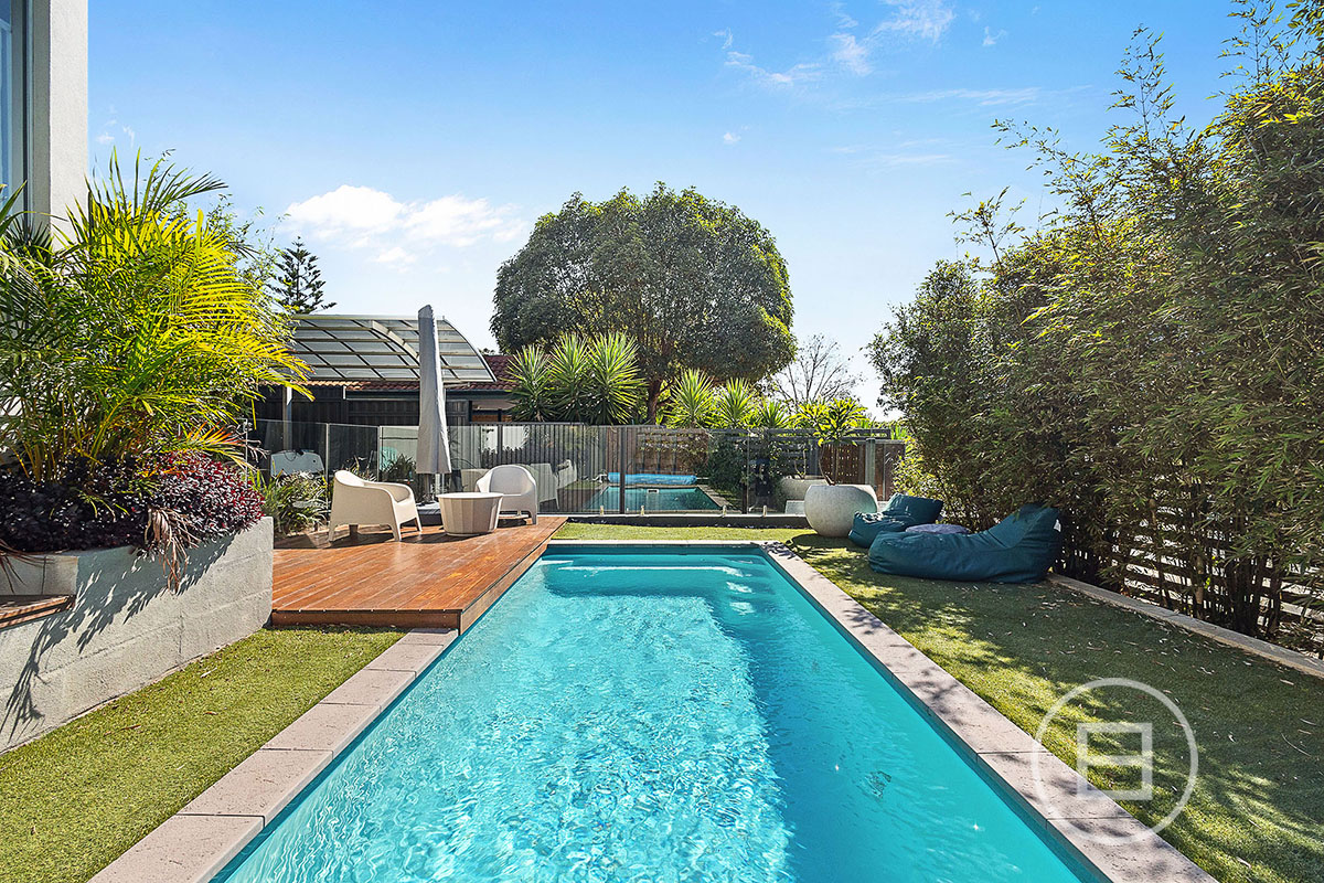 Glass doors open to a private entertaining retreat, timber decking underfoot, bamboo screening for privacy, and a below-ground pool that sets the tone for long summer days. Covered where you need it, open where you want it, with a retractable awning for flexibility year-round.