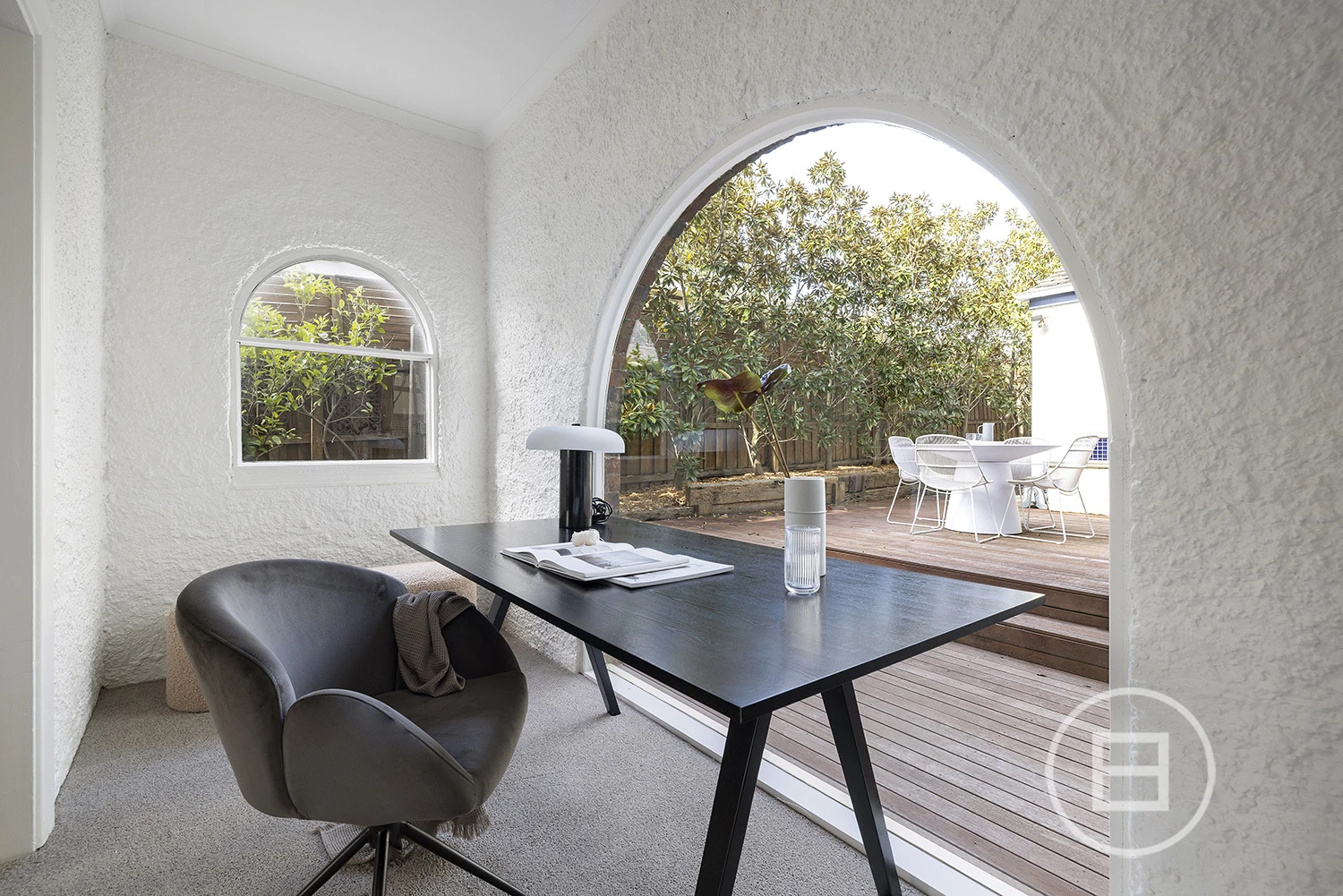 An expansive ground-floor master with walk-thru robes and huge spa ensuite are amongst the many highlights together with two further bathrooms and an additional powder room, whilst eye-catching period accents such as intricate plasterwork, an open fireplace and sweeping arches are reminders of the original pedigree.
