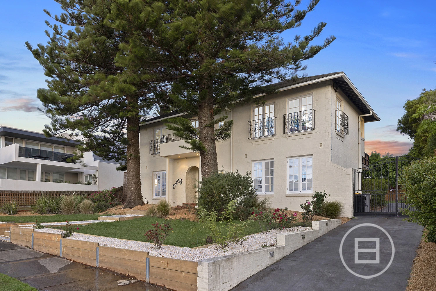 Up high to enjoy elevated outlooks across the locality right to the waters of Port Phillip Bay, this gracious dame is alive with character and charm, and boasts a raft of right up-to-date renovations ensuring it is ready and waiting for its next privileged custodians. Situated on an expansive 943m2 (approx) allotment of prestige beachside land, the light-filled home offers a reverse layout that affords the refurbished spaces - in particular the renovated stone kitchen - glorious views to the horizon.
