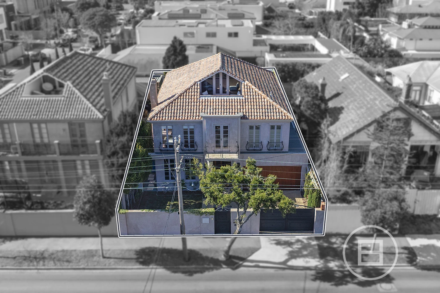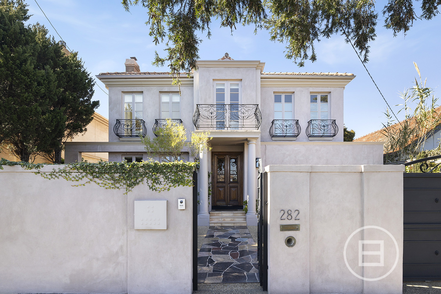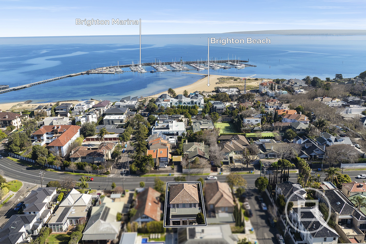 Fronting Brighton’s celebrated Golden Mile, footsteps from the Royal Brighton Yacht Club and foreshore, this compelling tri-level residence reveals a private world where yacht masts rise across the horizon, sunsets fall over the You Yangs and French-inspired architecture is paired with family-scale living. Behind tall, secure fences and wrought-iron gates, the distinctly European facade introduces an interior designed to carry light across generous proportions, with a rooftop terrace crowning the layout spectacularly.