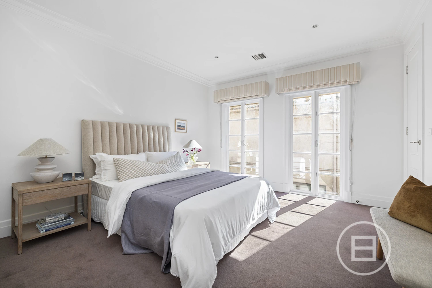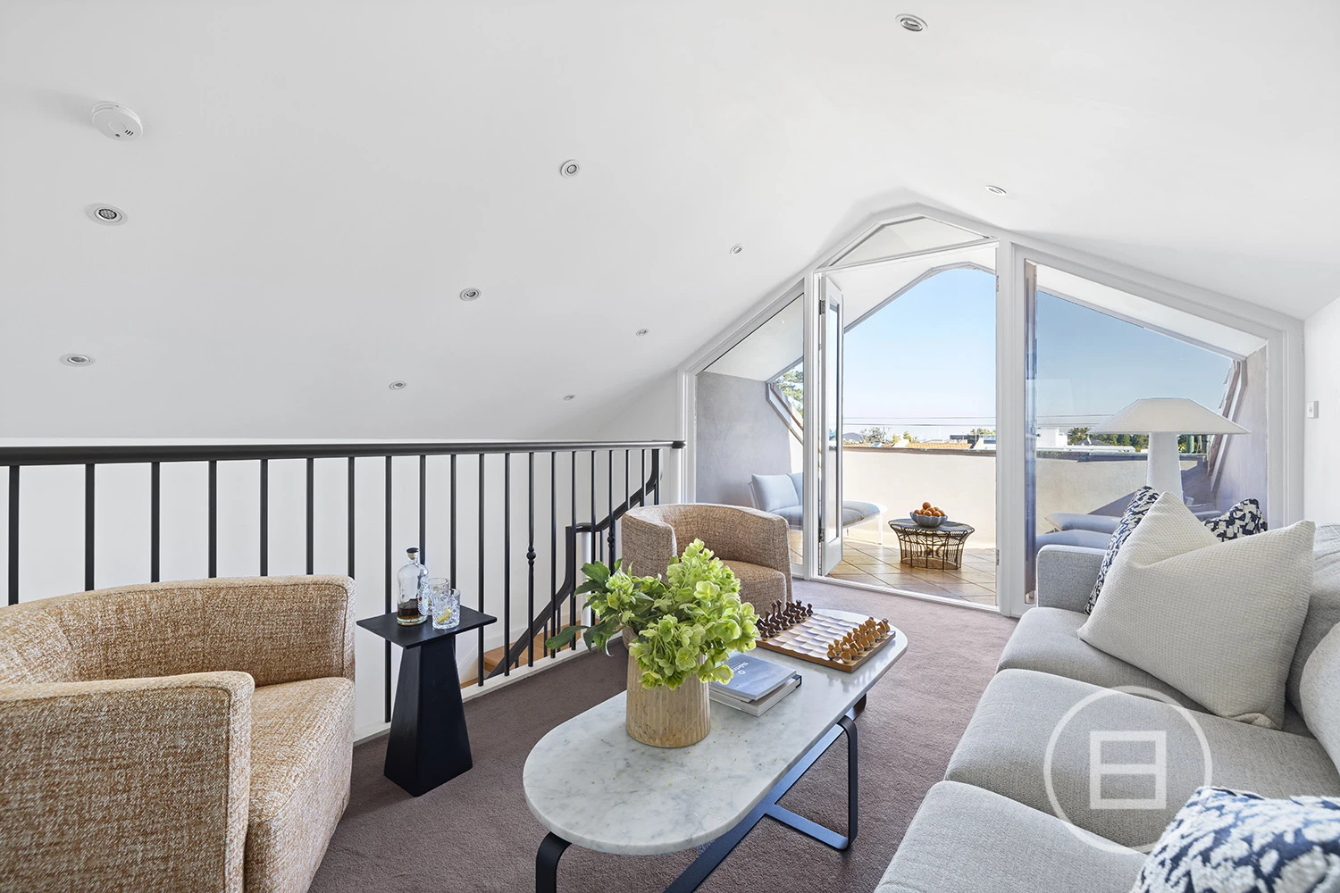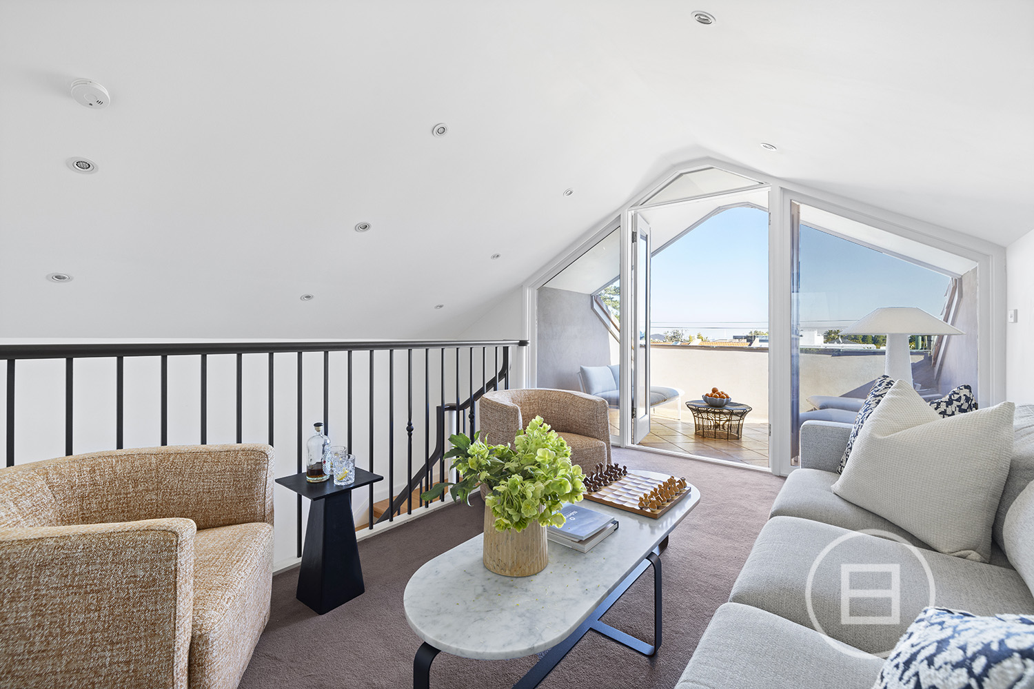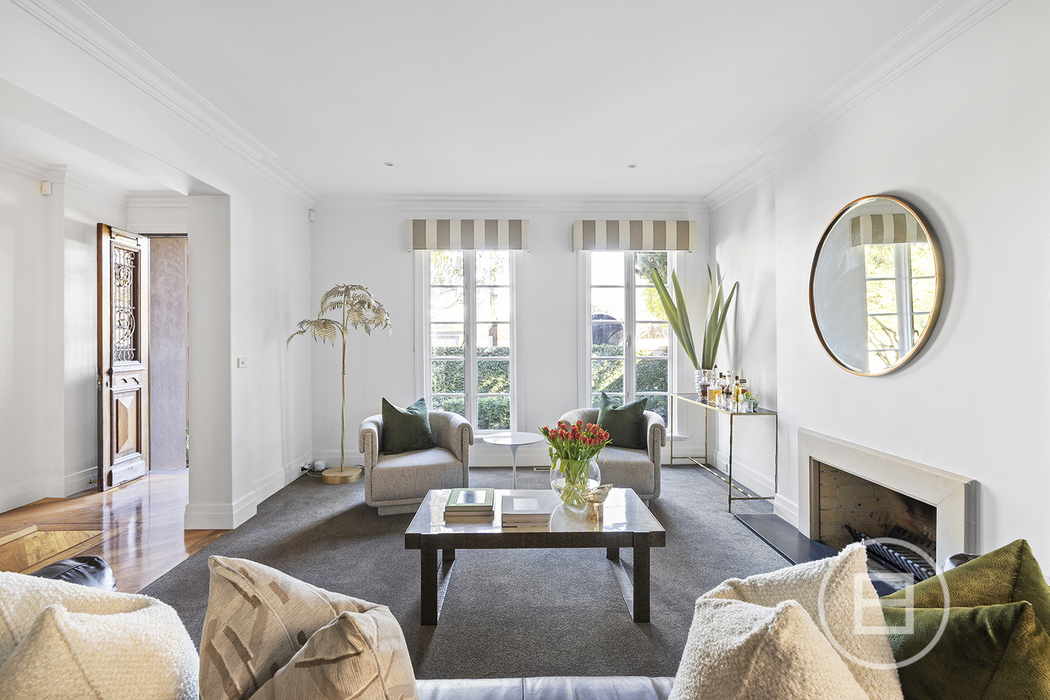 Fronting Brighton’s celebrated Golden Mile, footsteps from the Royal Brighton Yacht Club and foreshore, this compelling tri-level residence reveals a private world where yacht masts rise across the horizon, sunsets fall over the You Yangs and French-inspired architecture is paired with family-scale living. Behind tall, secure fences and wrought-iron gates, the distinctly European facade introduces an interior designed to carry light across generous proportions, with a rooftop terrace crowning the layout spectacularly.