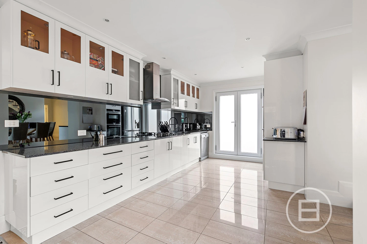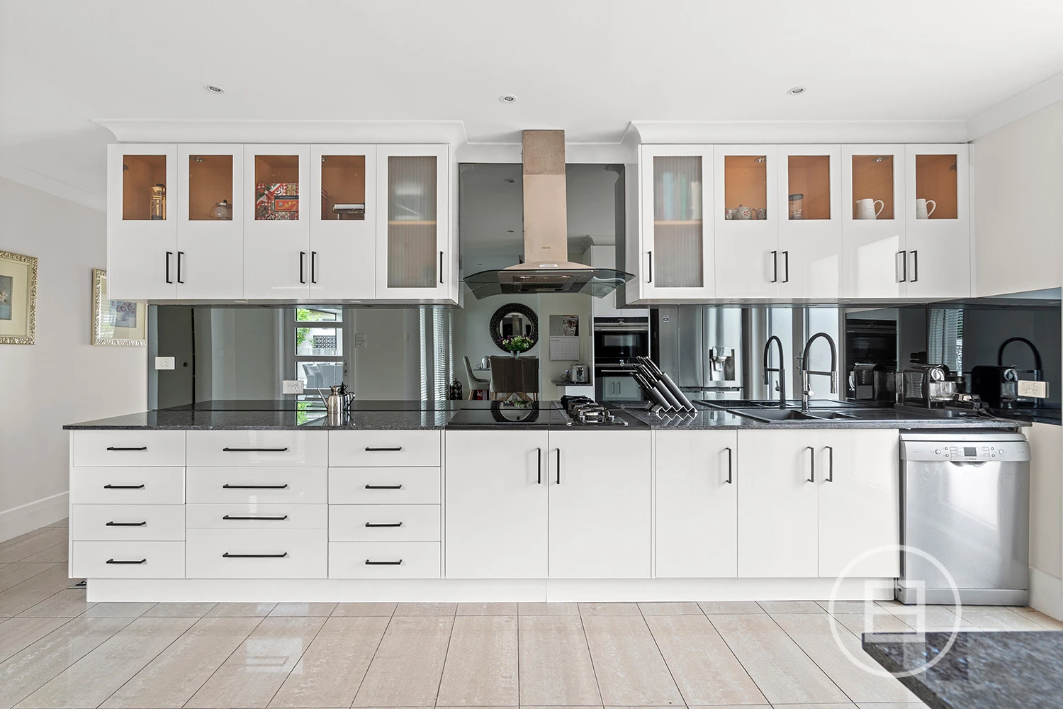Living and dining spaces complement a stellar outdoor setting. Granite kitchen benches – top-shelf Siemens appliances – substance-backed entertaining.