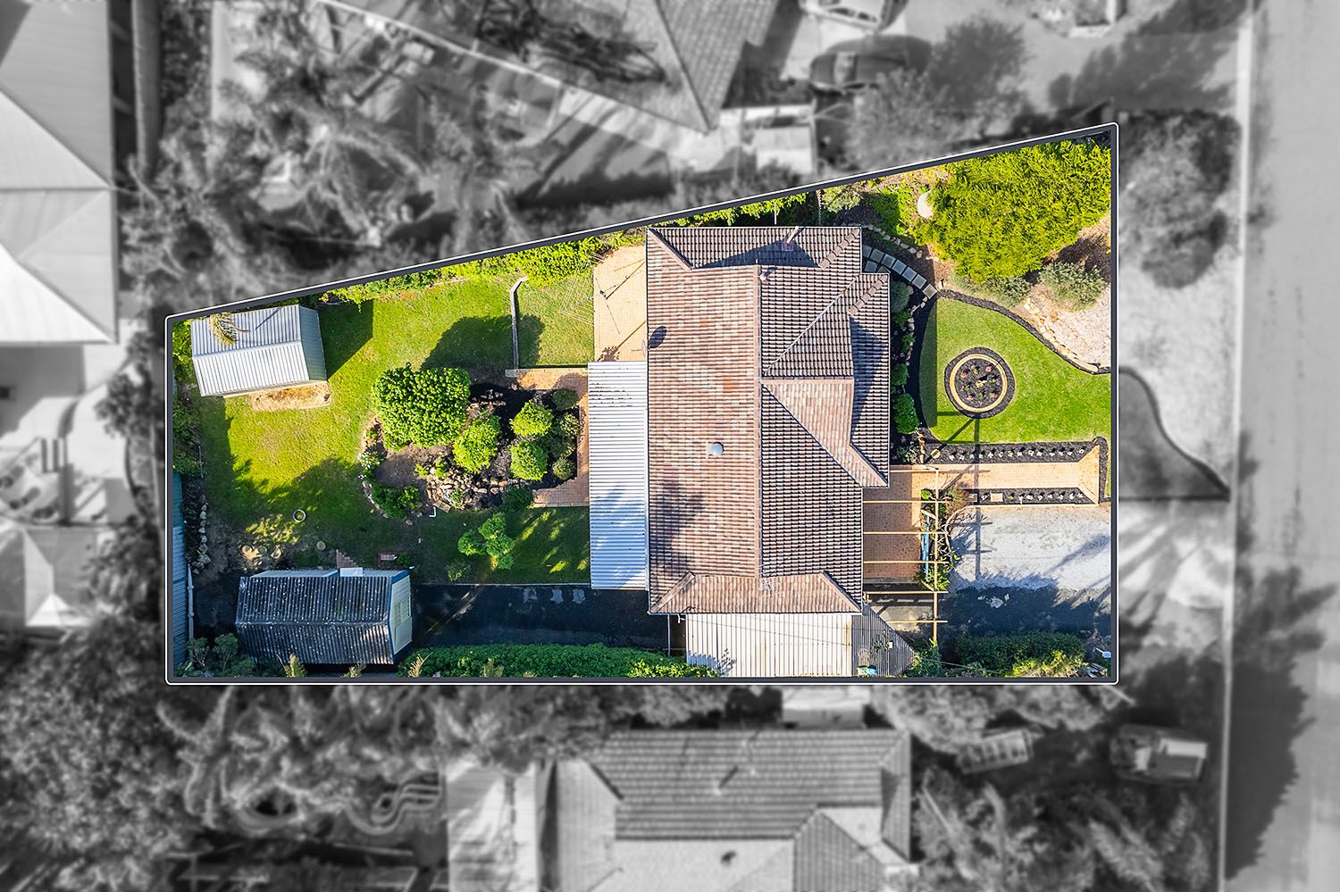 The large kitchen, equipped with plenty of cabinetry and storage space, offers the ideal environment for the culinary enthusiast. This area extends out to a beautifully manicured backyard, which includes an undercover alfresco area, perfect for entertaining guests. The lush grassy gardens create a serene outdoor space, complemented by an outdoor shed and garage, providing additional storage and functionality.