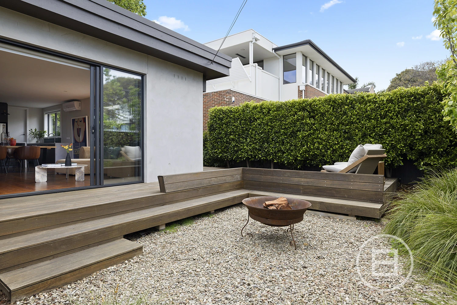 Only 400m from the bay and just a short stroll to the vibrant Black Rock Village, this entirely private three-bedroom, two-bathroom home effortlessly captures a lifestyle of luxury, convenience, and character. Originally crafted in the 1970s, its bespoke architecture and proportions have been reimagined with a designer touch, showcasing an intelligent design that flows seamlessly between indoor and outdoor living.