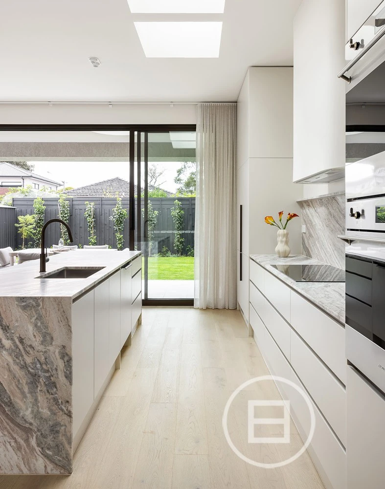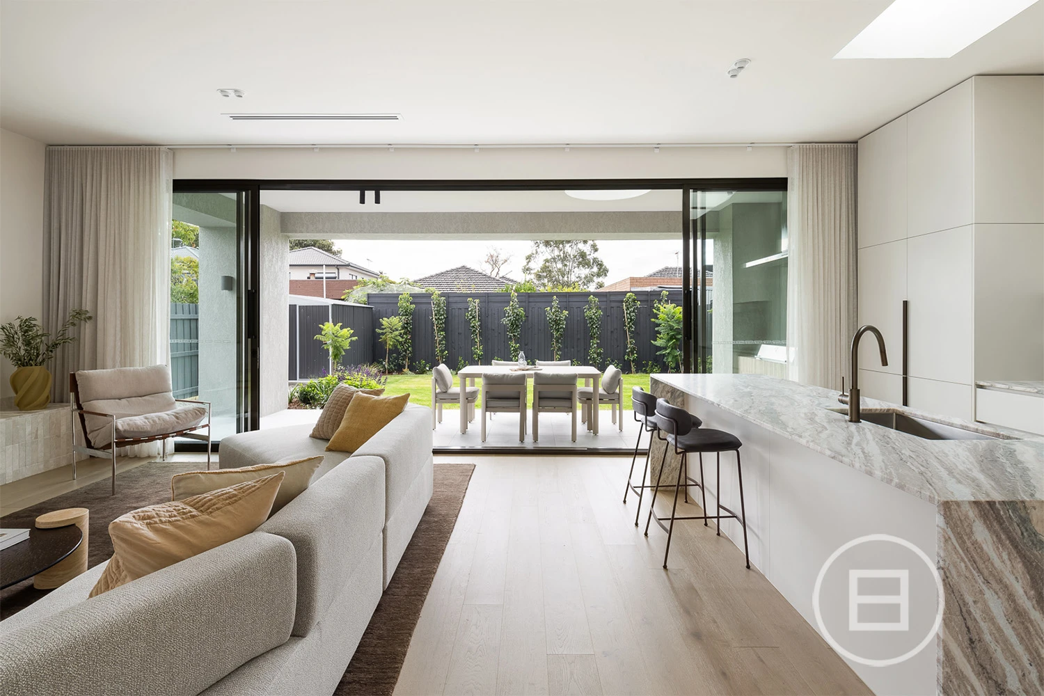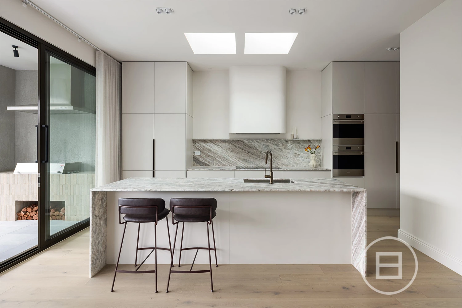 Medusa quartzite. Tumbled limestone. Solid travertine. The finest materials money can buy in a luxury home that would fit right in south of the Yarra.