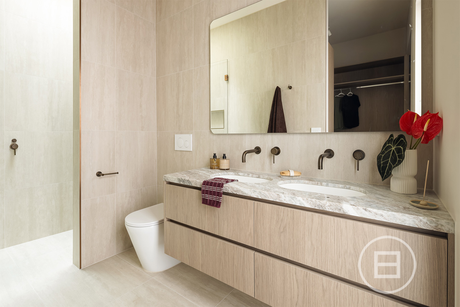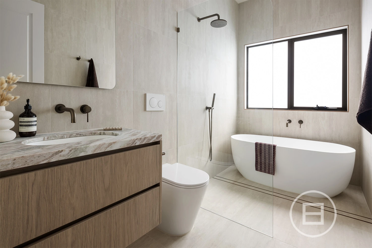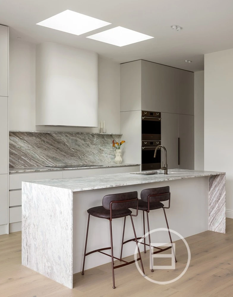 Medusa quartzite. Tumbled limestone. Solid travertine. The finest materials money can buy in a luxury home that would fit right in south of the Yarra.