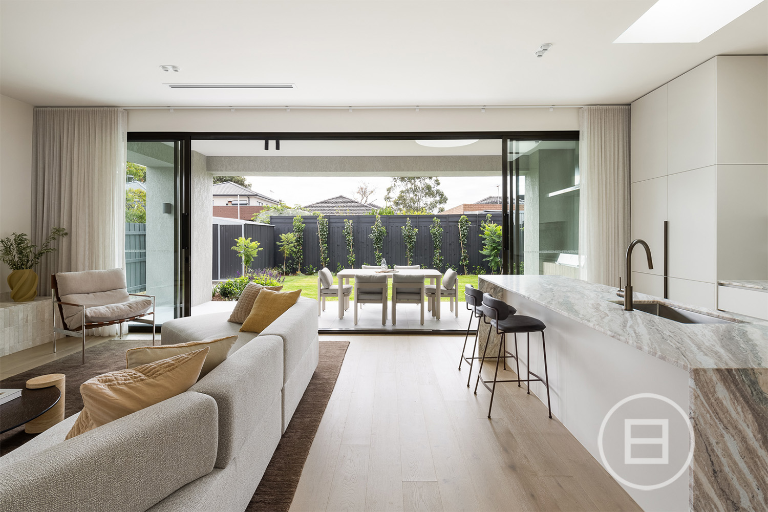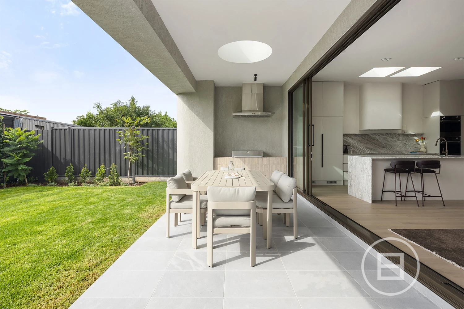 Inside and out come together seamlessly – great for having friends around, firing up the plumbed barbecue and letting young kids run free in the totally private backyard.