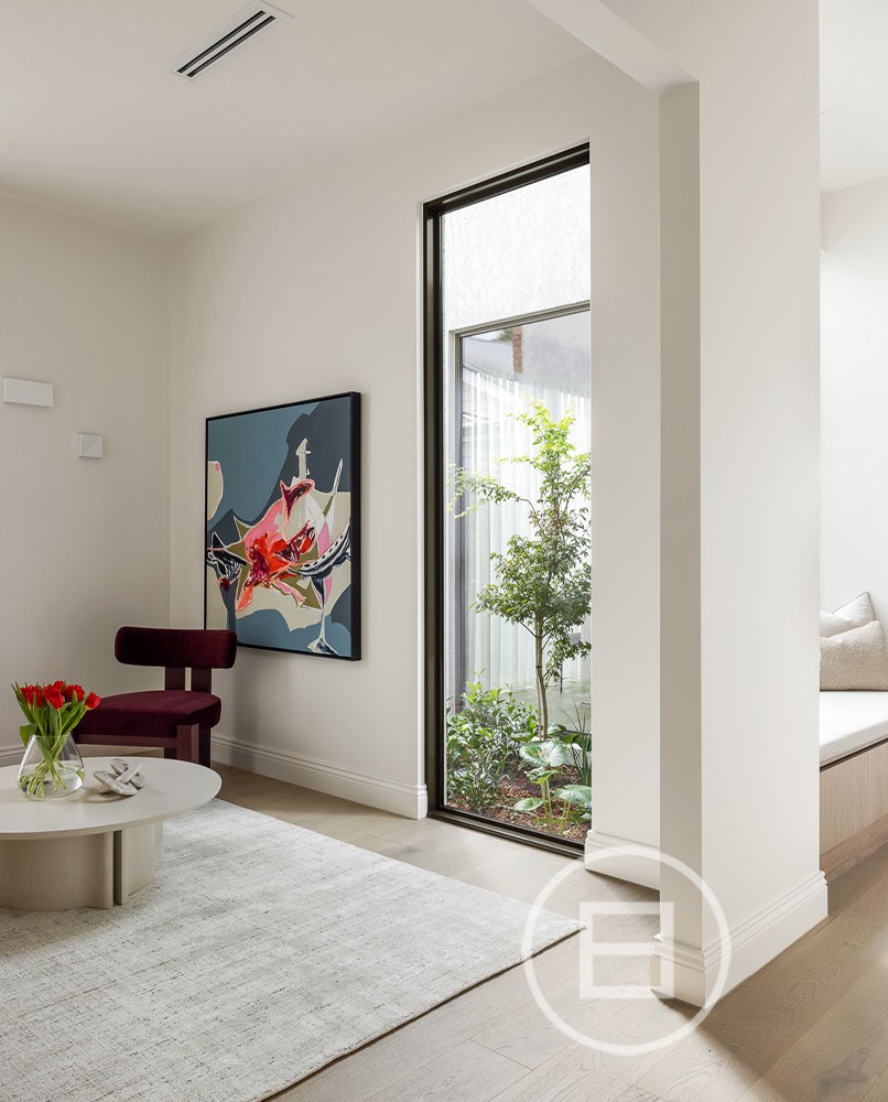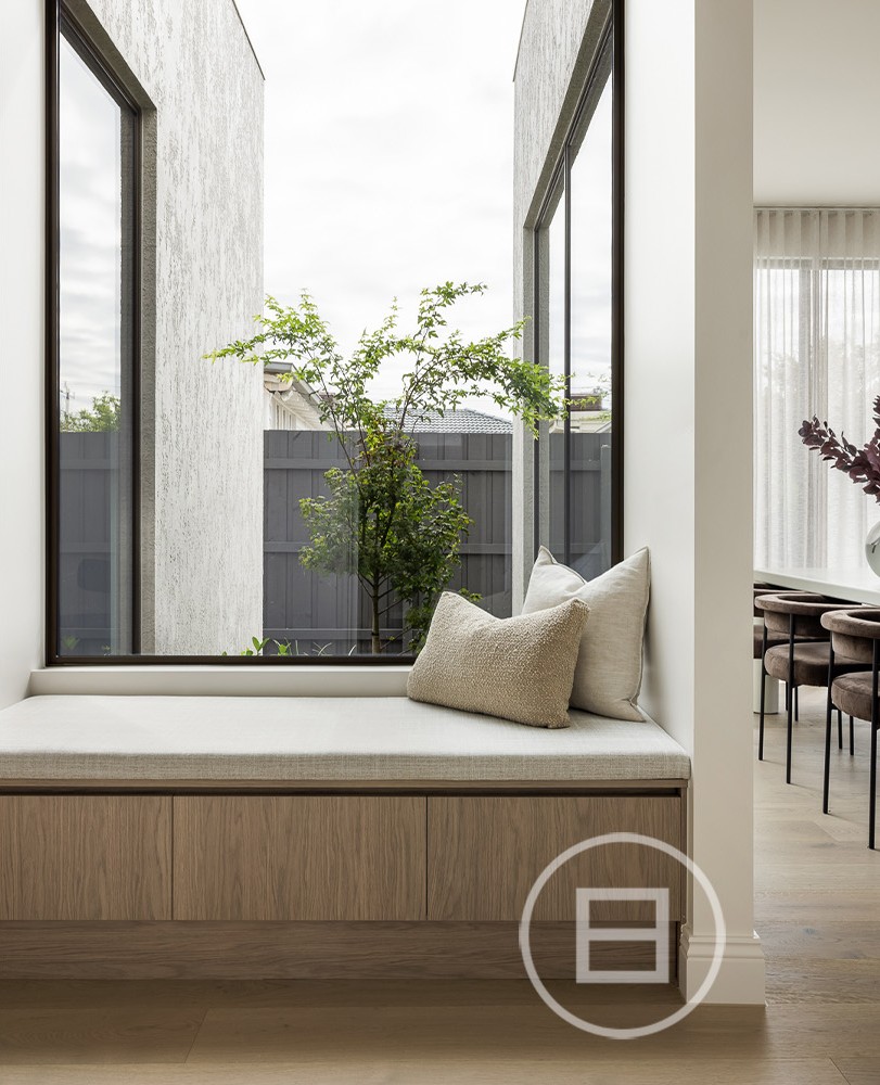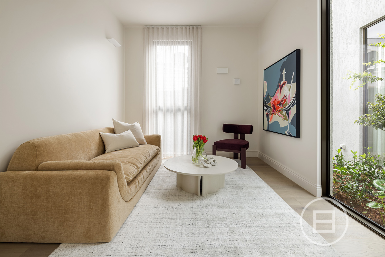 A second living area doubles as a study to be ideal for today’s professional, while a window seat makes the most of a northern courtyard’s green backdrop.