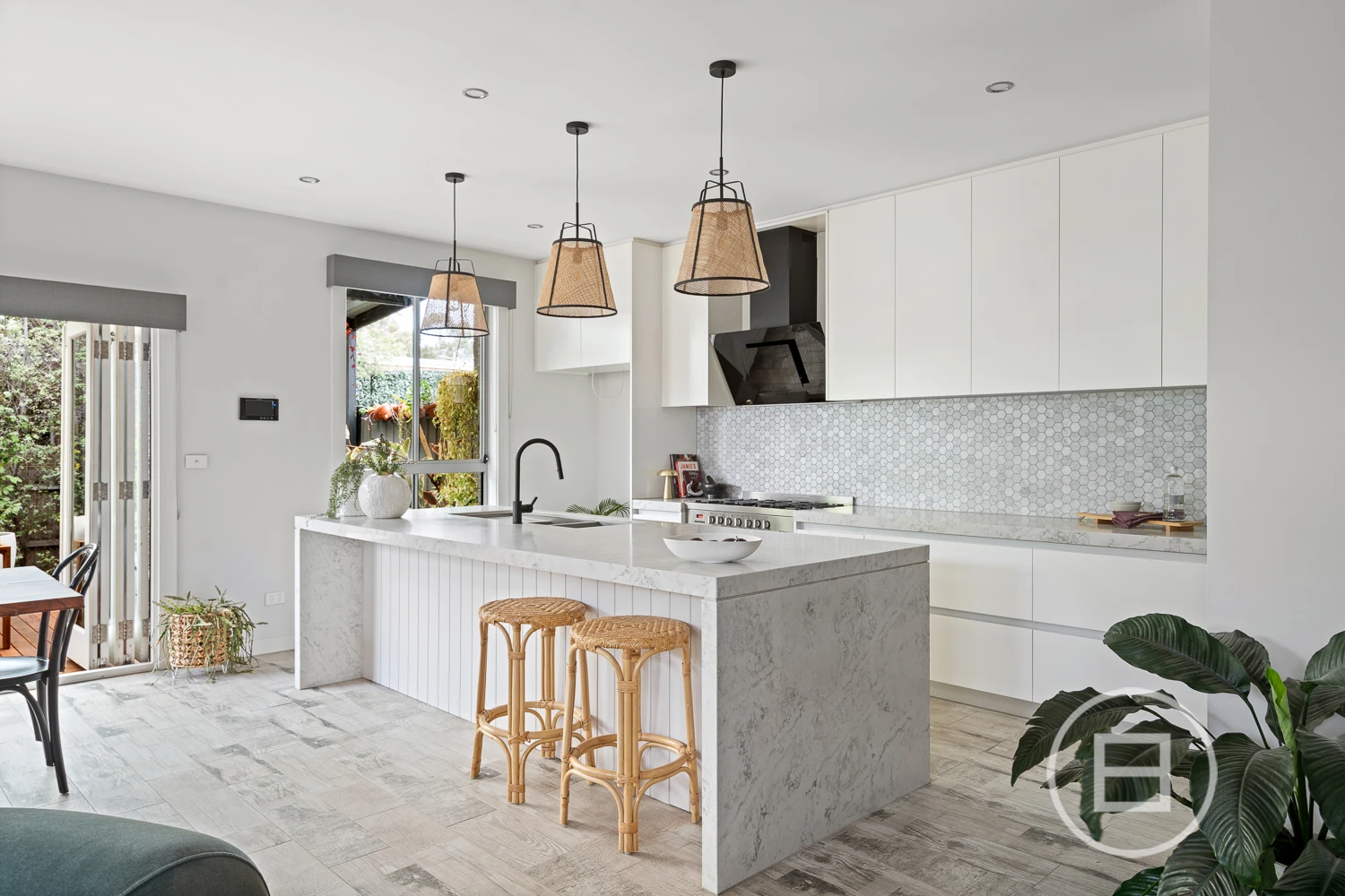 Thoughtful touches continue throughout — video intercom, alarm with security cameras, data cabling, three phase power, full split-system comfort, off-street parking, an established garden, and a versatile studio-style garage with private access and second kitchen. With everything you need within walking distance, this home delivers effortless living and lifestyle in equal measure.
