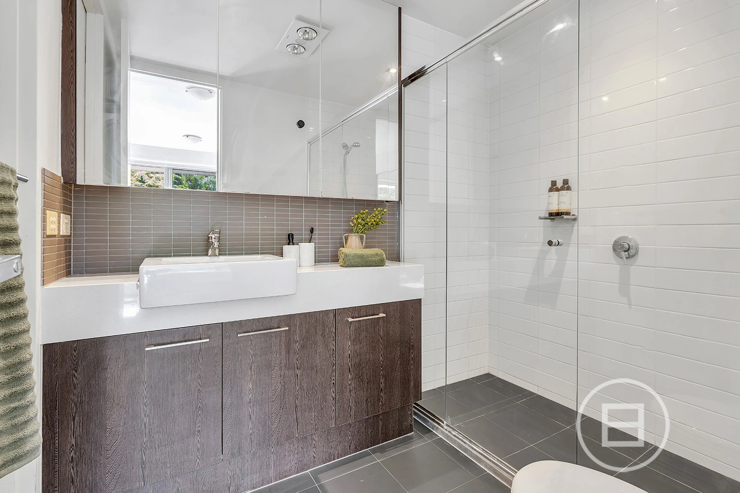 Made for the entertainer, an expansive, middle-level living/dining area spills onto a substantial, north-facing terrace, with park and treetop outlooks a stunning backdrop for a family barbecue, morning coffee listening to the birds, or sunset drink with friends. A waterfall island, 900mm oven/gas stove, dishwasher, and extensive cabinetry feature in a stone-top kitchen capable of catering for any occasion, while other highlights include mirrored robes to all bedrooms, timber floors, an under-stair storeroom, video intercom, alarm, and private double garage.