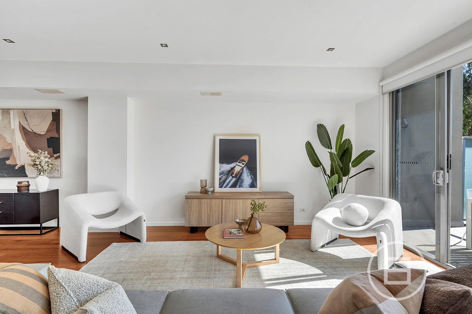 Hidden privately and securely behind a high-fence entry, architectural façade, and front yard perfect for lounging among the trees, a clever interior spans three light-filled levels, offering both immediate comfort and scope to refresh in years to come.