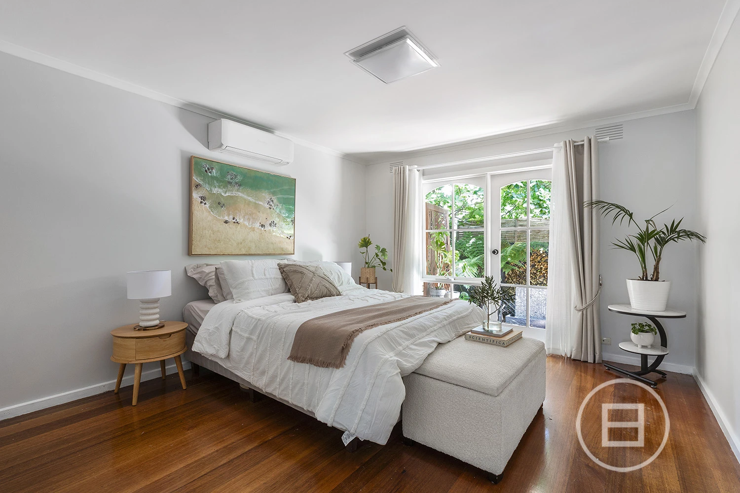 The bedroom configuration will impress, with two generously sized bedrooms tucked away at the rear, complete with built-in robes, and the exquisite addition of the generous main suite, boasting a walk-in robe and an en-suite with a tranquil garden view and bathtub. Up-sized with a bright, renovated family bathroom and a large laundry, this quality appointed home features split system heating/cooling, abundant storage, polished timber floors, and ample off-street parking there's all you need here to start up with space, invest in a coveted pocket, or downsize within a walk of Bay Street's shopping, dining and elite schools.