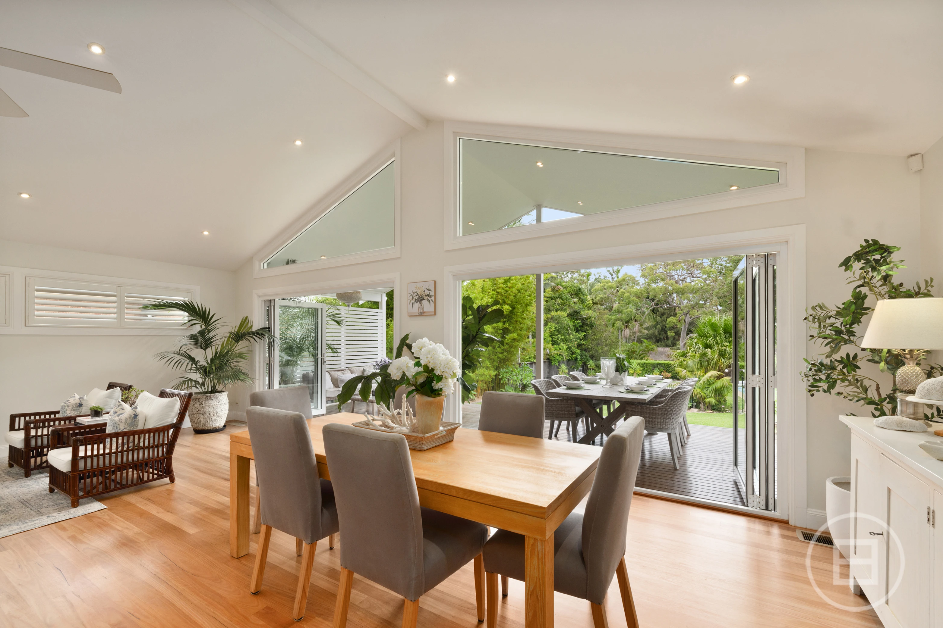 Built from the ground up 15 years ago, with a separate, near self-contained one bedroom retreat retained for guests, extended family, or supplementary income, it centres on a magnificent living and dining domain housed under towering cathedral ceilings, with full-width glass bi-fold doors creating a seamless transition to an expansive covered entertainers’ deck surveying the rear gardens.