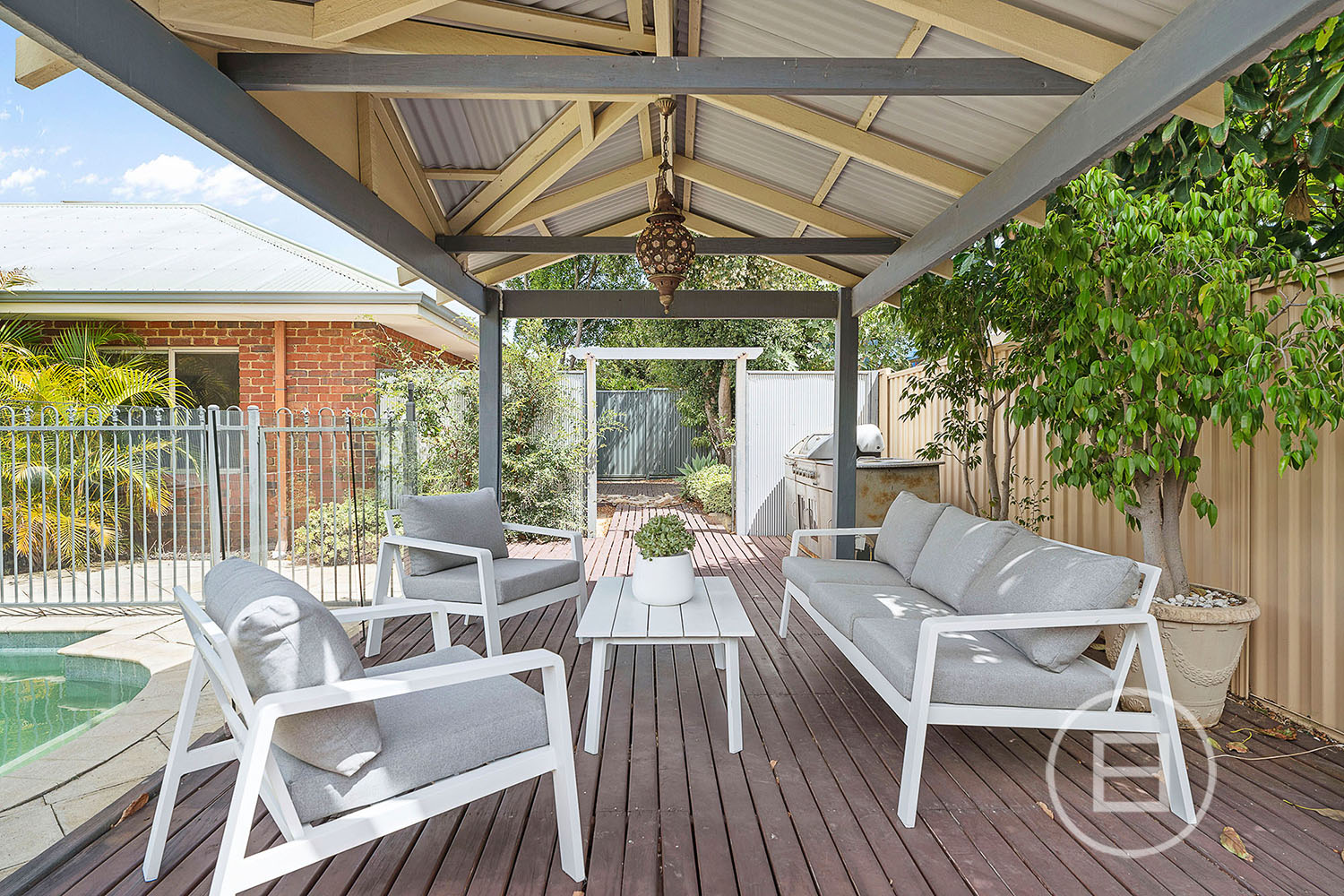 Outside, the rear verandah and alfresco entertaining area wrap around a sparkling swimming pool, where a poolside gazebo, deck and built-in barbecue create the ultimate backyard retreat. With skirting boards, ornate ceiling details, ducted air-conditioning, a fireplace, security doors and a large double lock-up garage with side storage and covered shopper’s access via the kitchen, this superb family haven is packed with features in a sought-after pocket of the suburb.