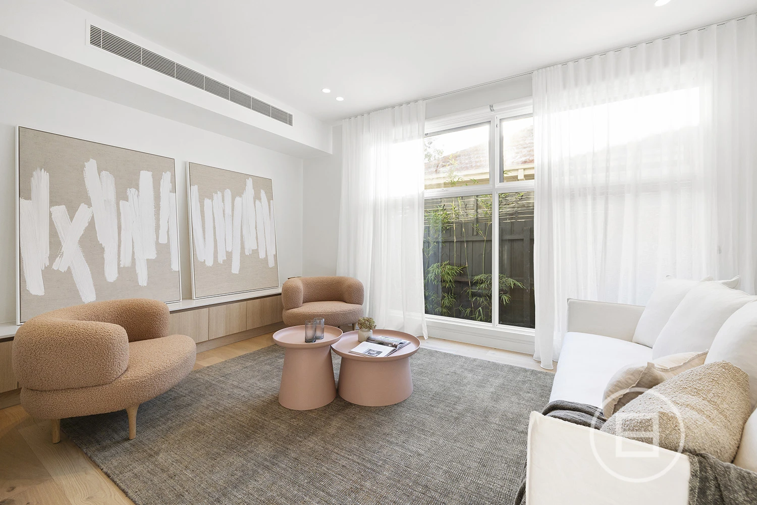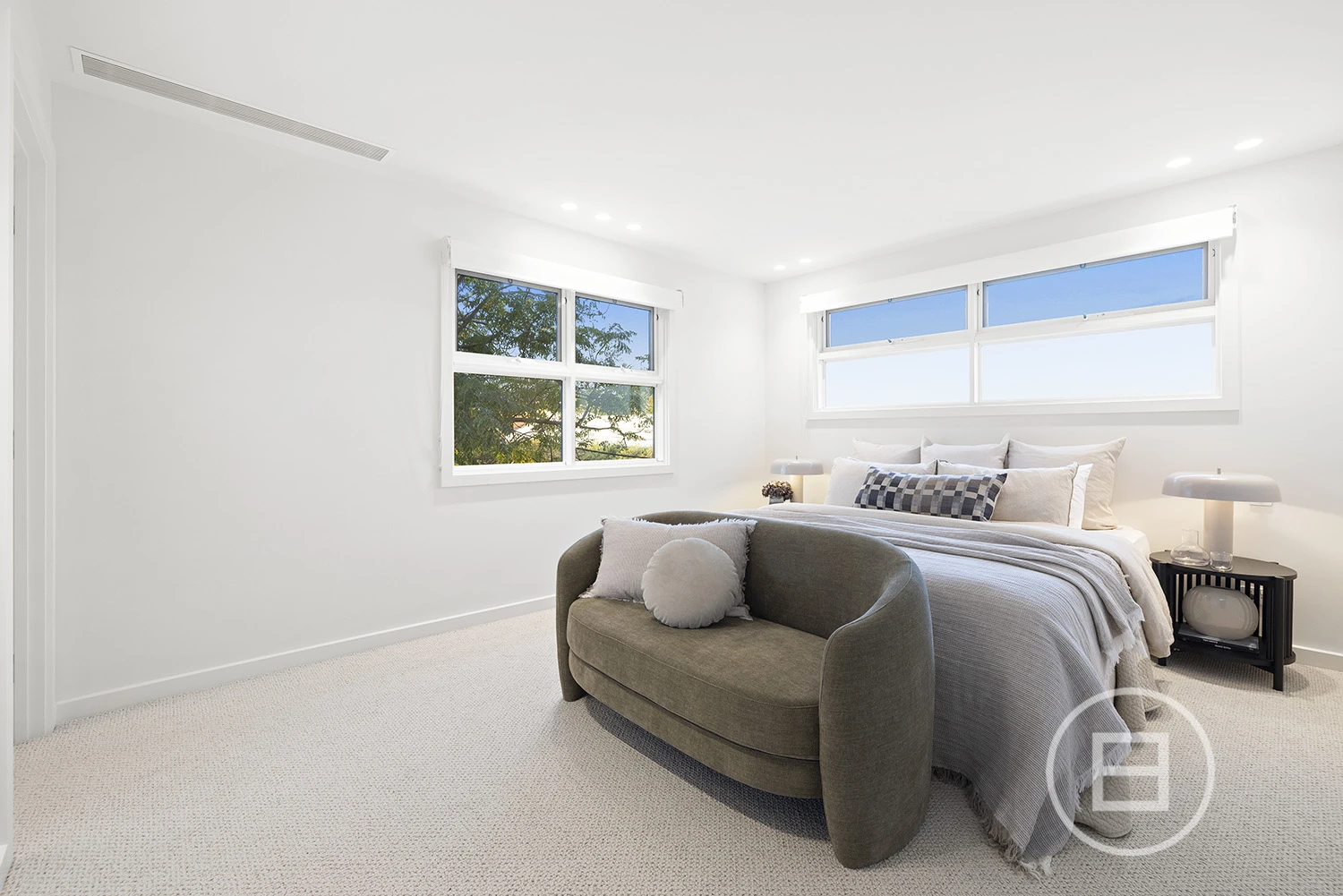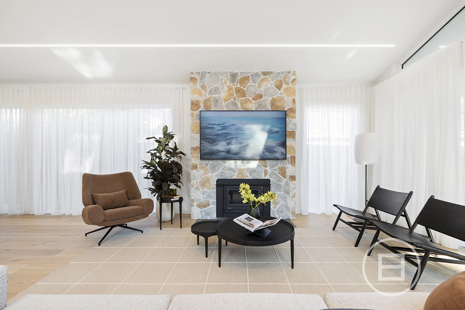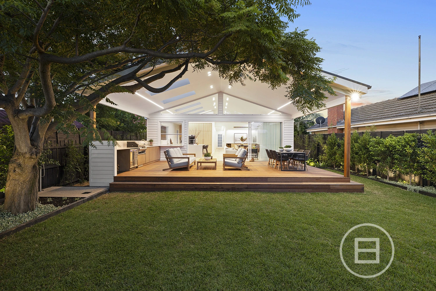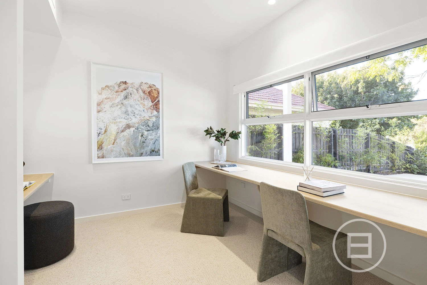 Architectural finishes and exceptional light steal the show once inside, with skylit-cathedral ceilings, engineered oak underfoot, and full-length sheers, adding softness to the bold, clean lines. Three distinct living areas, a fitted home office, and two ensuite bedrooms—including a luxe main upstairs with WIR and a ground-floor guest room with ensuite access—mean everyone has unique space. And when it’s time to turn it up a notch for entertaining, the open-plan living zone spills straight onto the deck and landscaped gardens, where long afternoons roll into balmy nights with a Zeigler & Brown plumbed-in gas BBQ taking centre stage in the outdoor kitchen.
