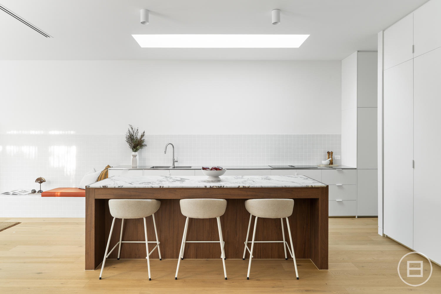 A first-class master enjoys a walk-in robe and private ensuite. The central bathroom has its own bathtub, three further bedrooms offer bespoke joinery – accommodation perfect for a family, professionals or downsizers.
