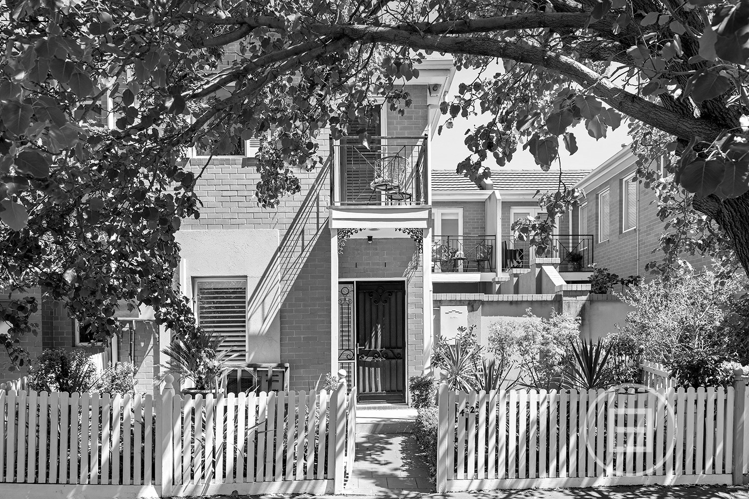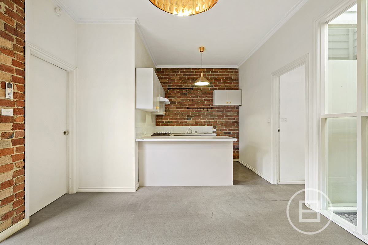 This entry level home consists of 3 bedrooms, with the front 2 opening onto an informal living area, featuring exposed brick walls.