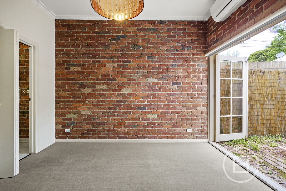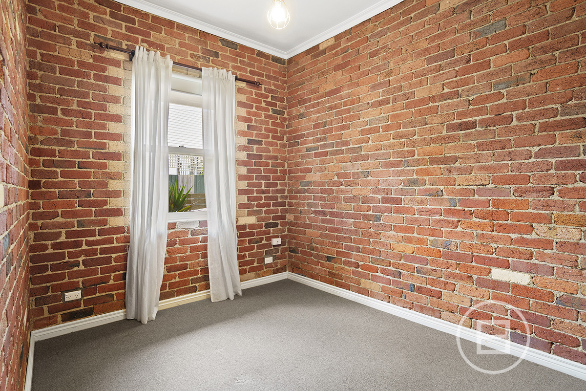 At the rear of the property sits the main bedroom with built-in robes and a small en-suite. Exposed brick walls feature throughout the entire home.