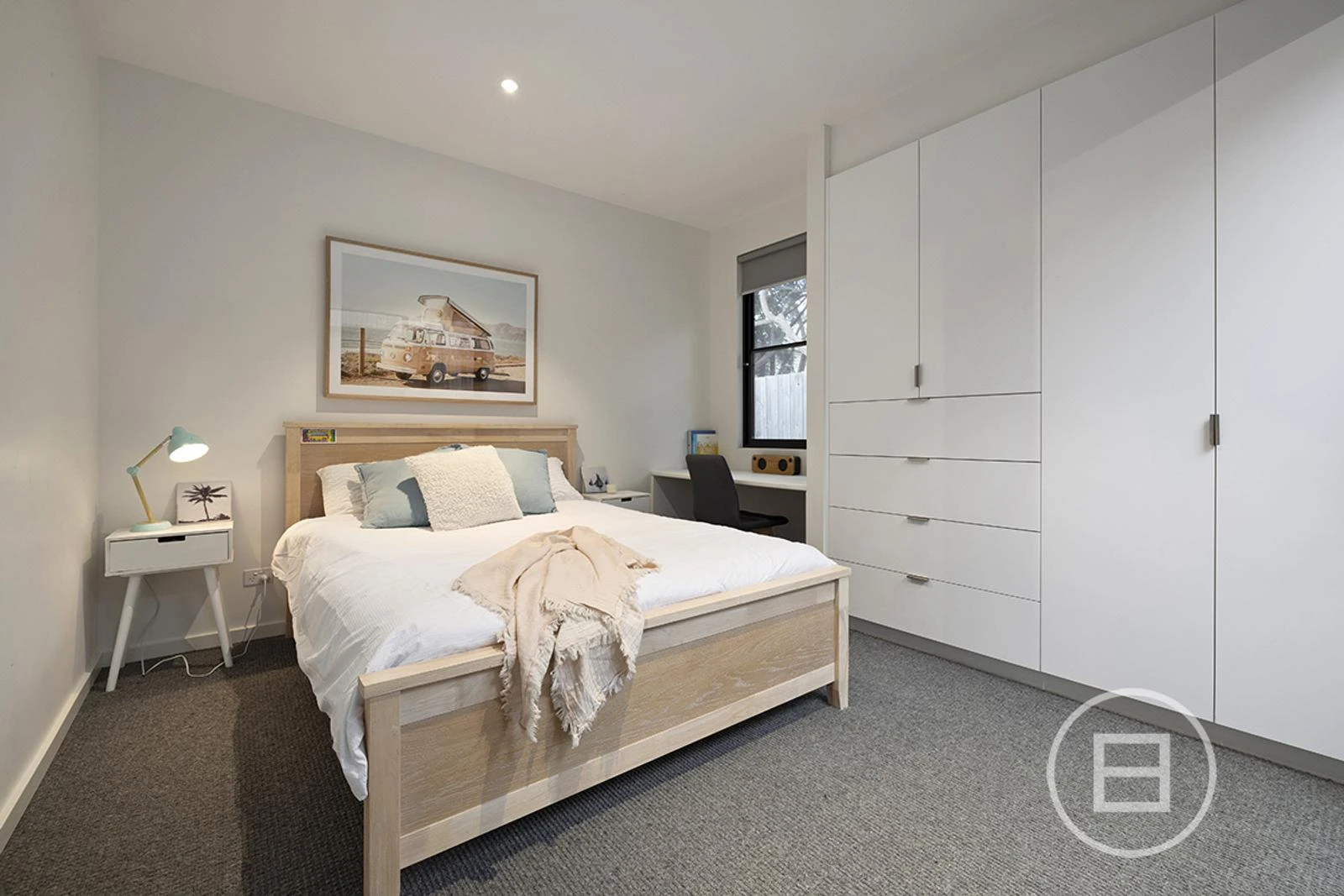 The master suite is set away from the living, and allows natural light throughout the day.